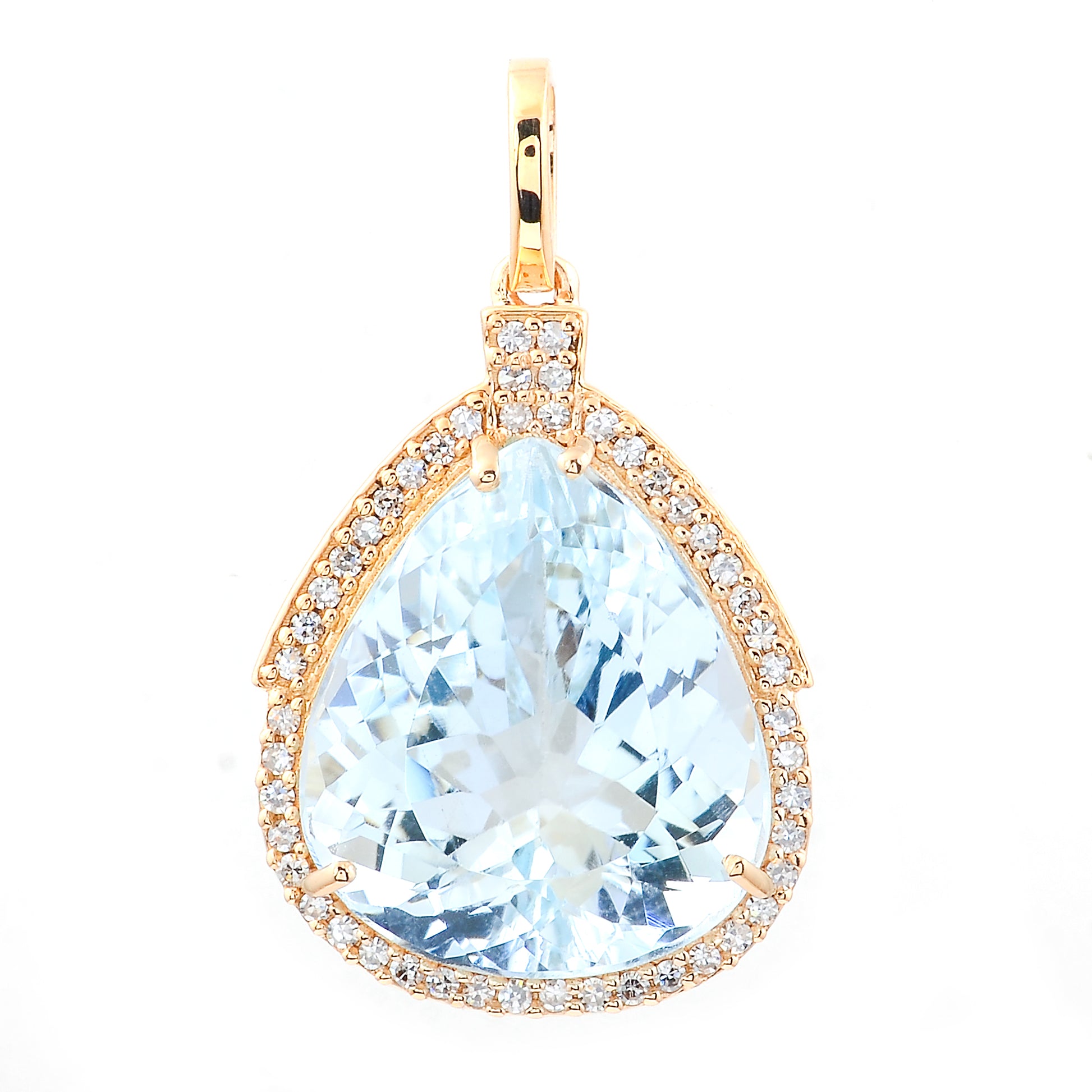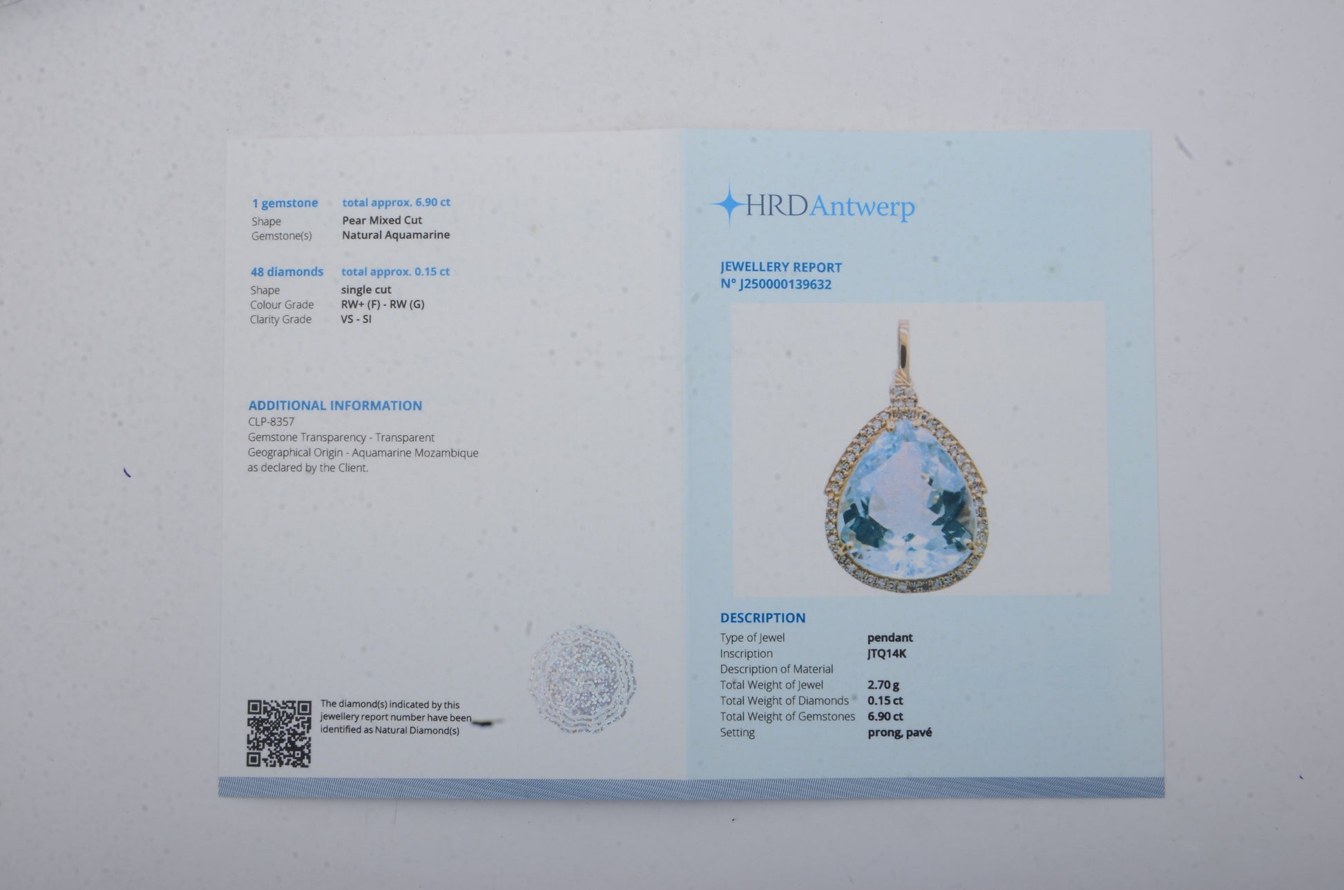 7.05 Ct Pear Mixed Cut Natural Aquamarine 14K Gold Pendant