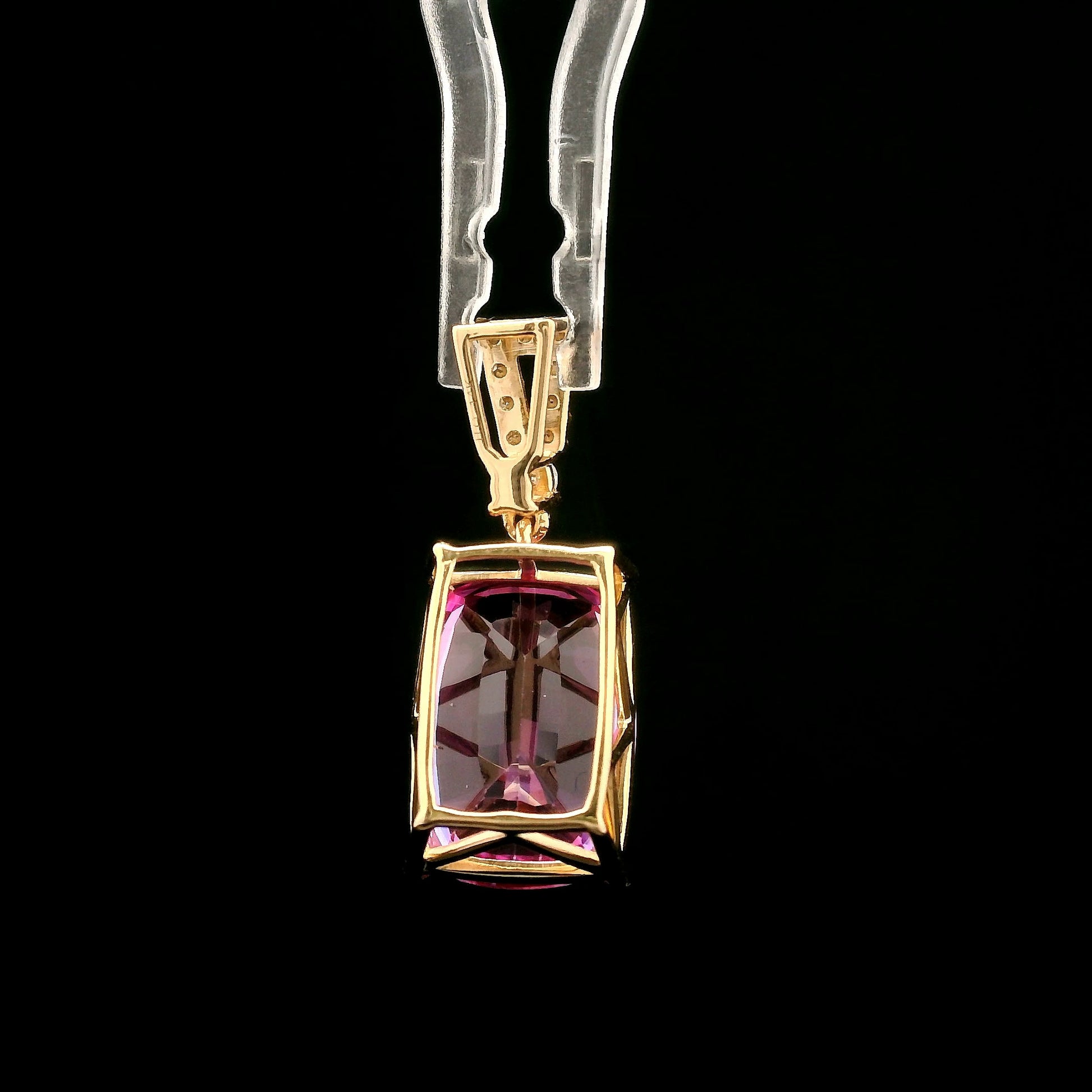7.07 Ct Rectangular Cushion Mixed Cut Lab Grown Pink Sapphire 14K Gold Pendant
