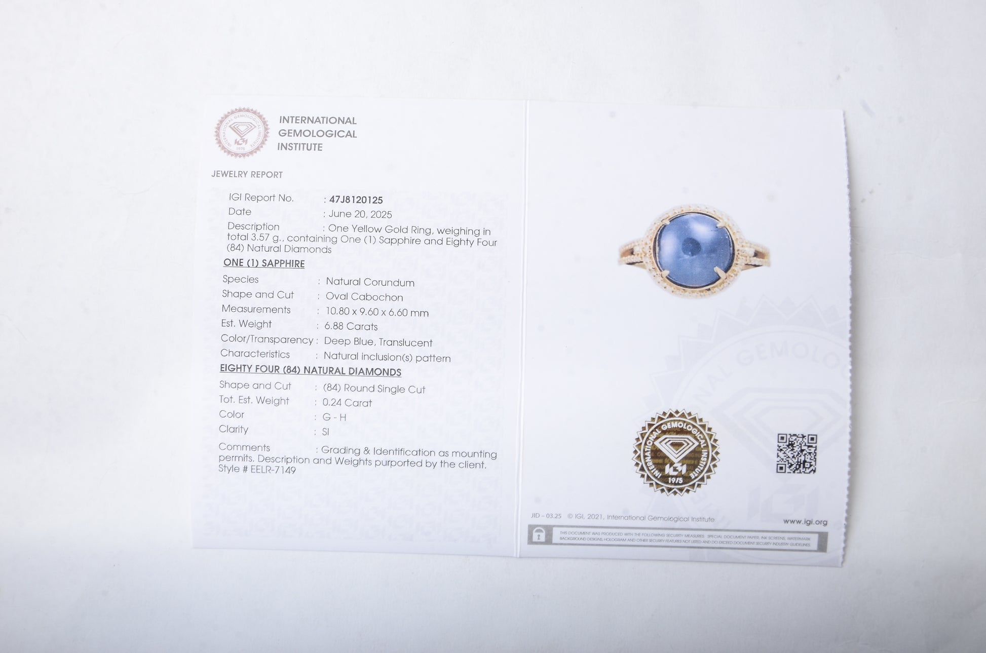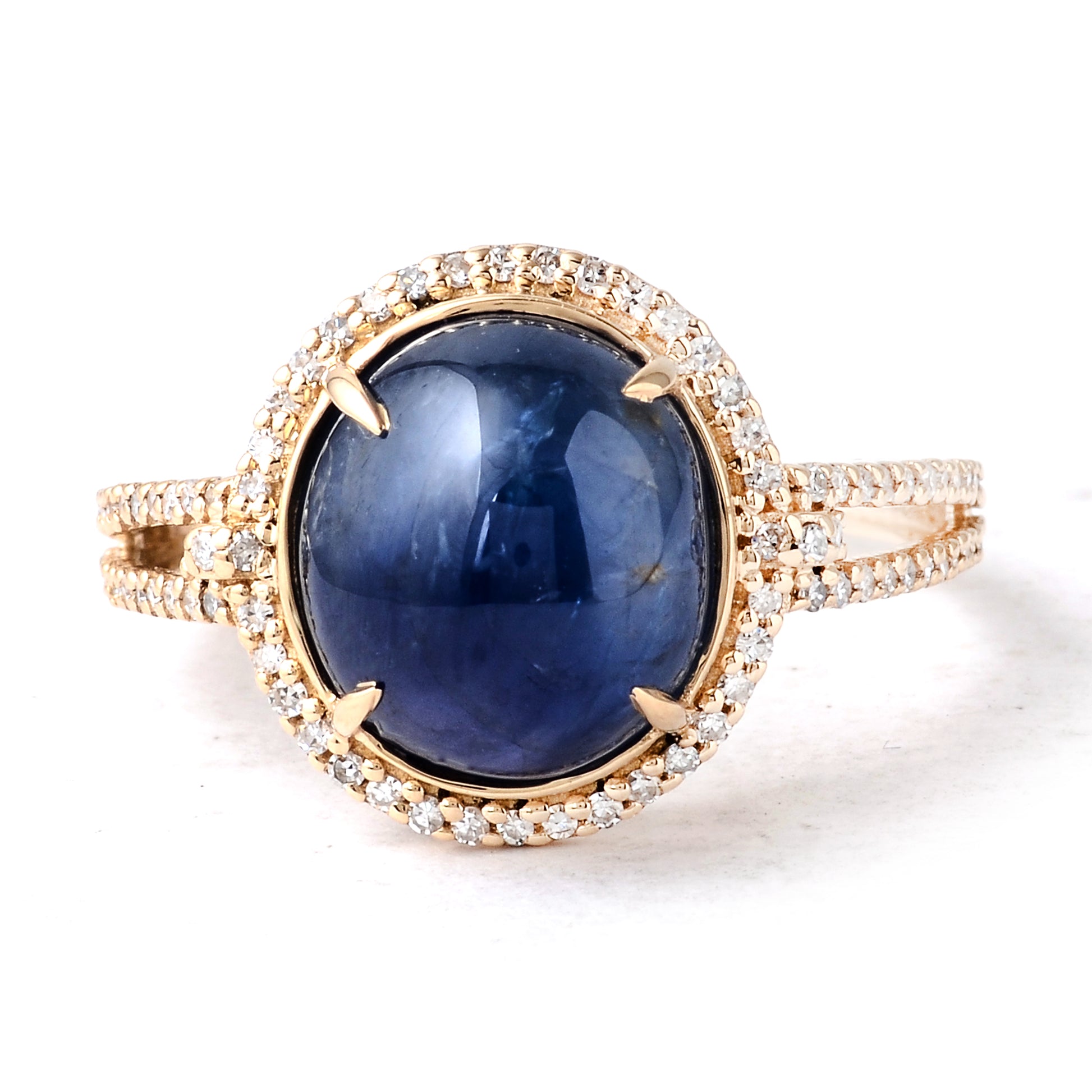 7.12 Ct Oval Cabochon Natural Corundum Sapphire 14K Gold Ring