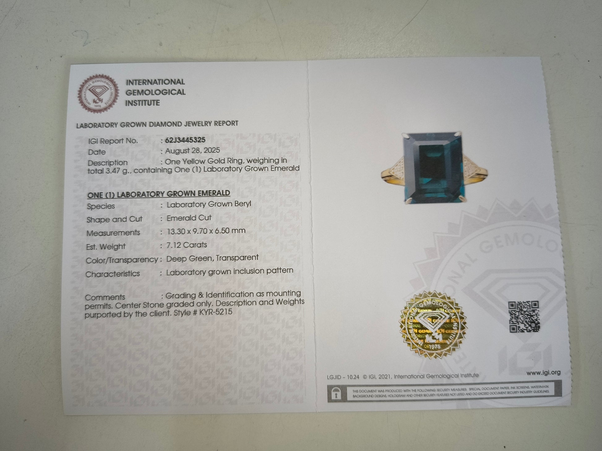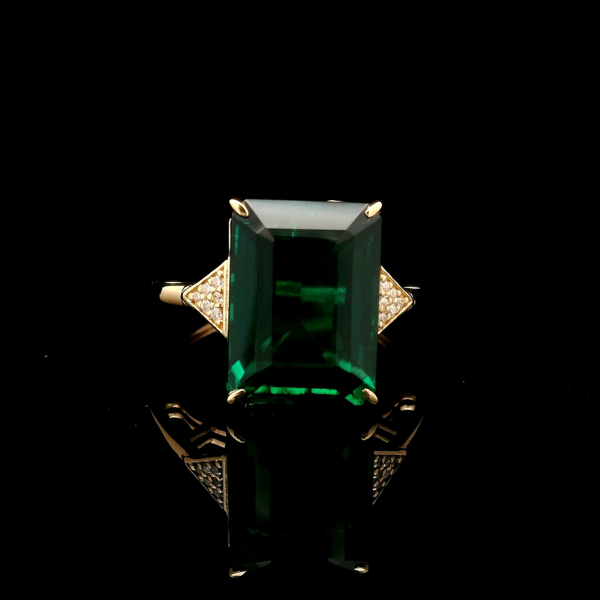 7.15 Ct Emerald Cut Lab Grown Emerald 14K Gold Ring