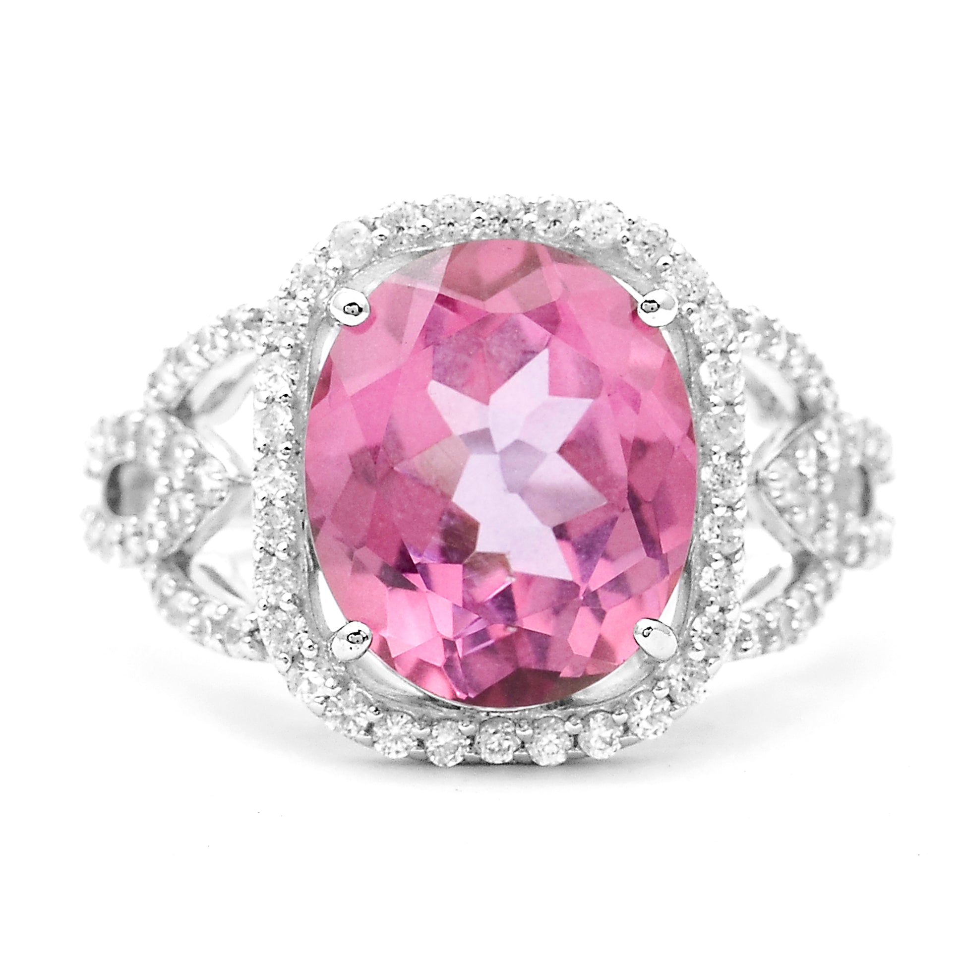 7.18 Ct Oval Pink Topaz, White Zircon 925 Sterling Silver Ring