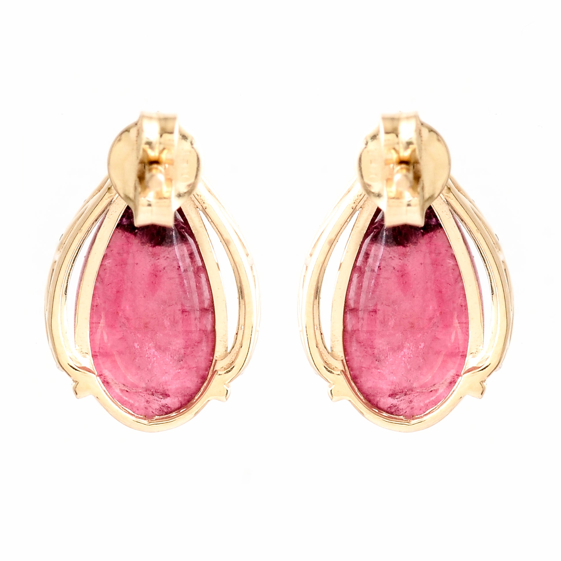 7.21 Ct Pear Cabochon Natural Tourmaline 14K Gold Earrings