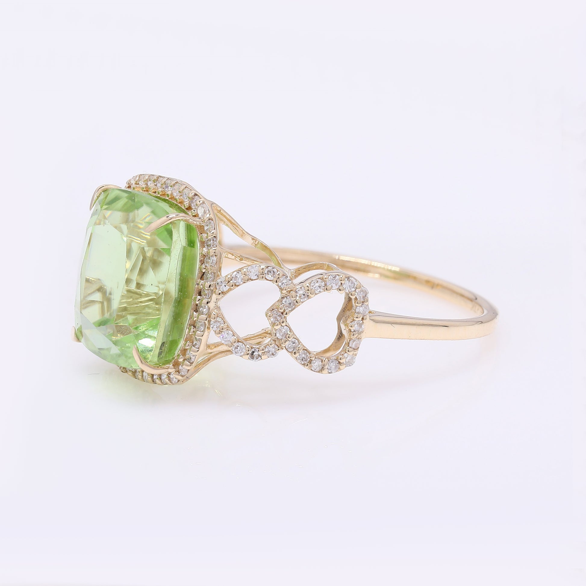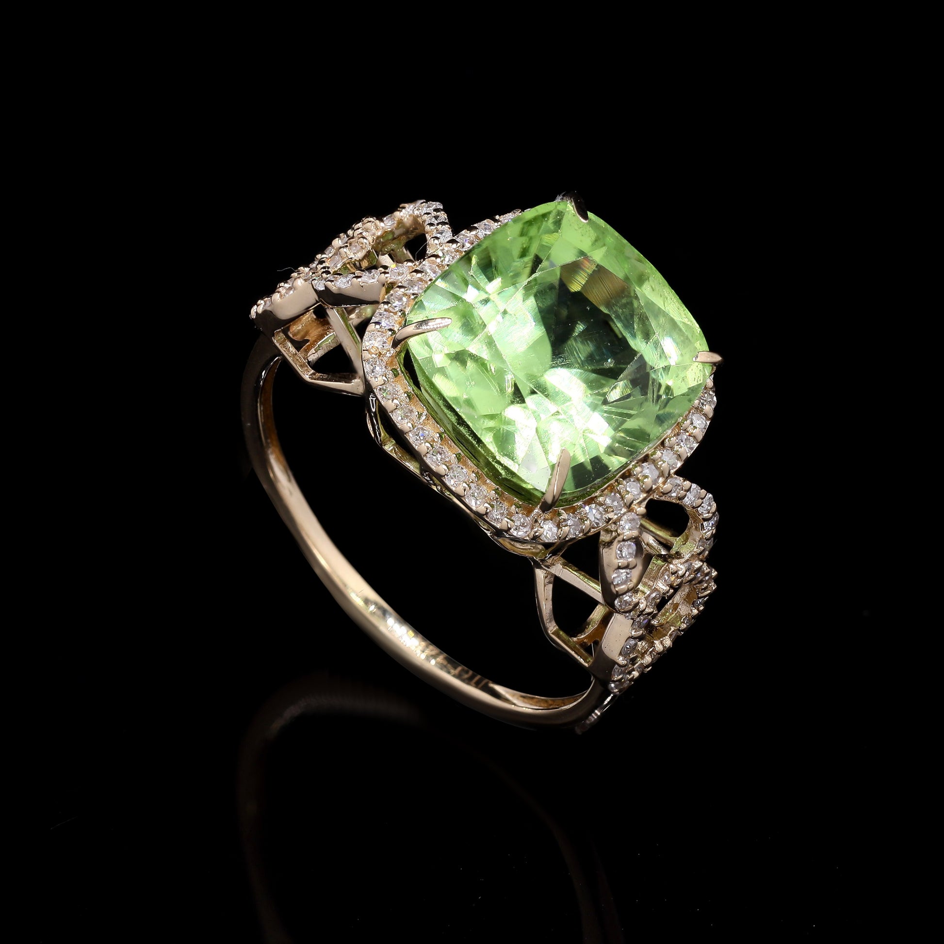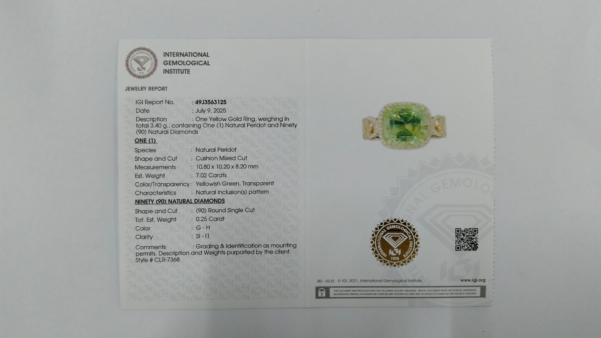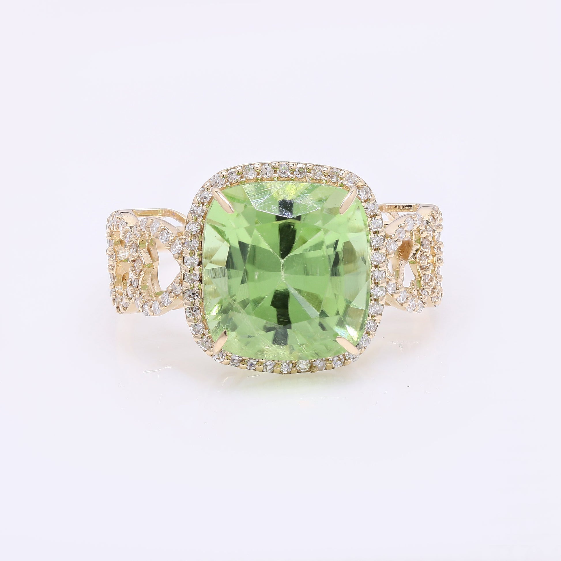 7.27 Ct Cushion Mixed Cut Natural Peridot 14K Gold Ring