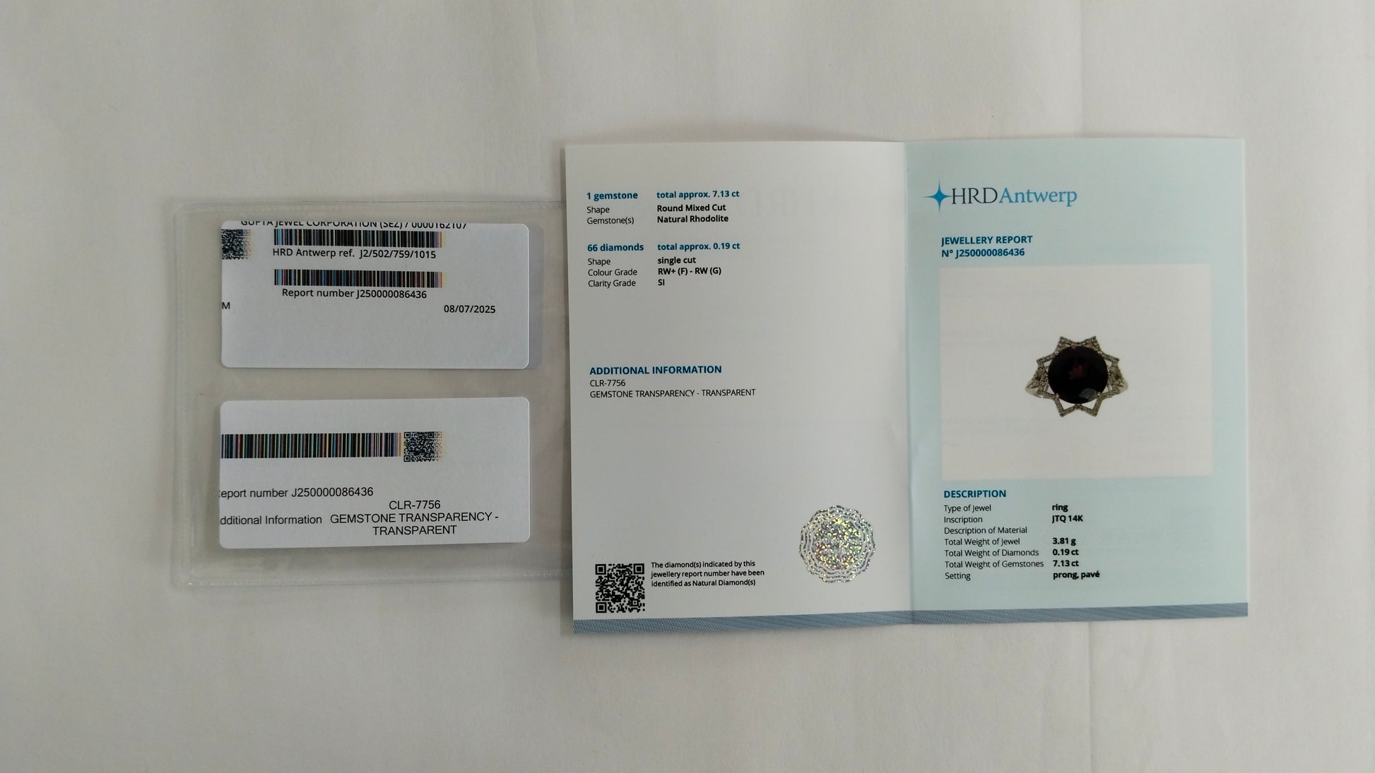 7.32 Total Carat Natural Rhodolite 14K Gold Ring