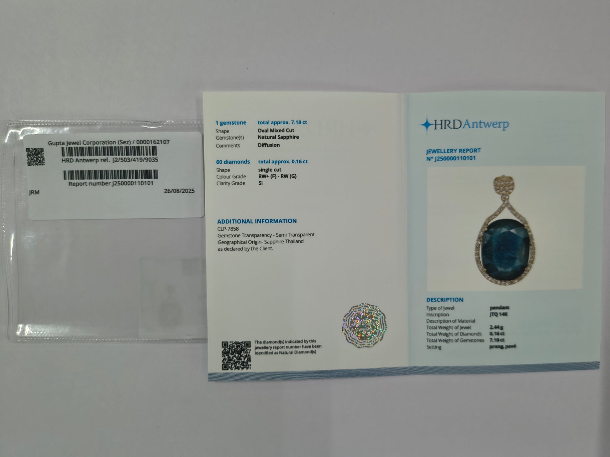 7.34 Ct Oval Mixed Cut Natural Sapphire 14K Gold Pendant