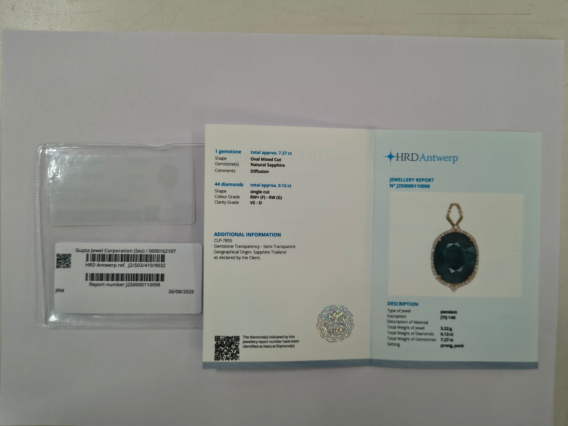 7.39 Ct Oval Mixed Cut Natural Sapphire 14K Gold Pendant
