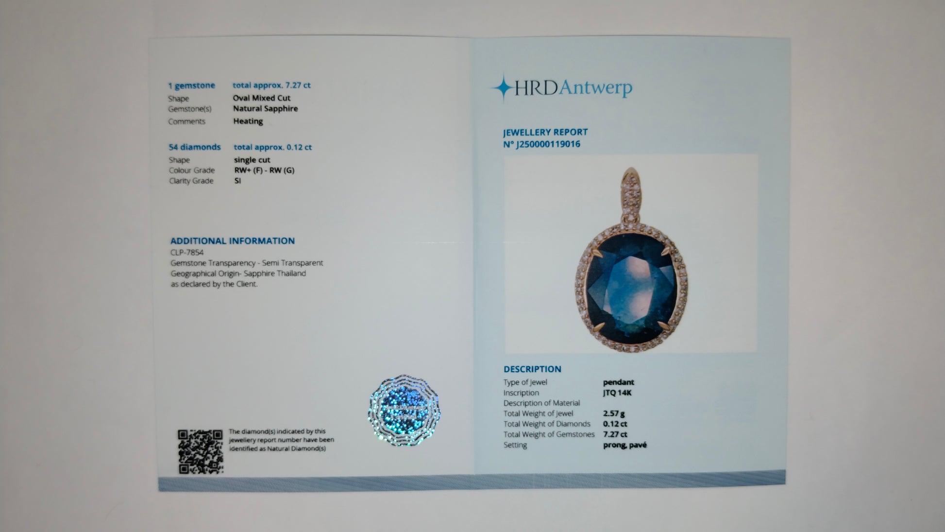 7.39 Total Carat Natural Sapphire 14K Gold Pendant