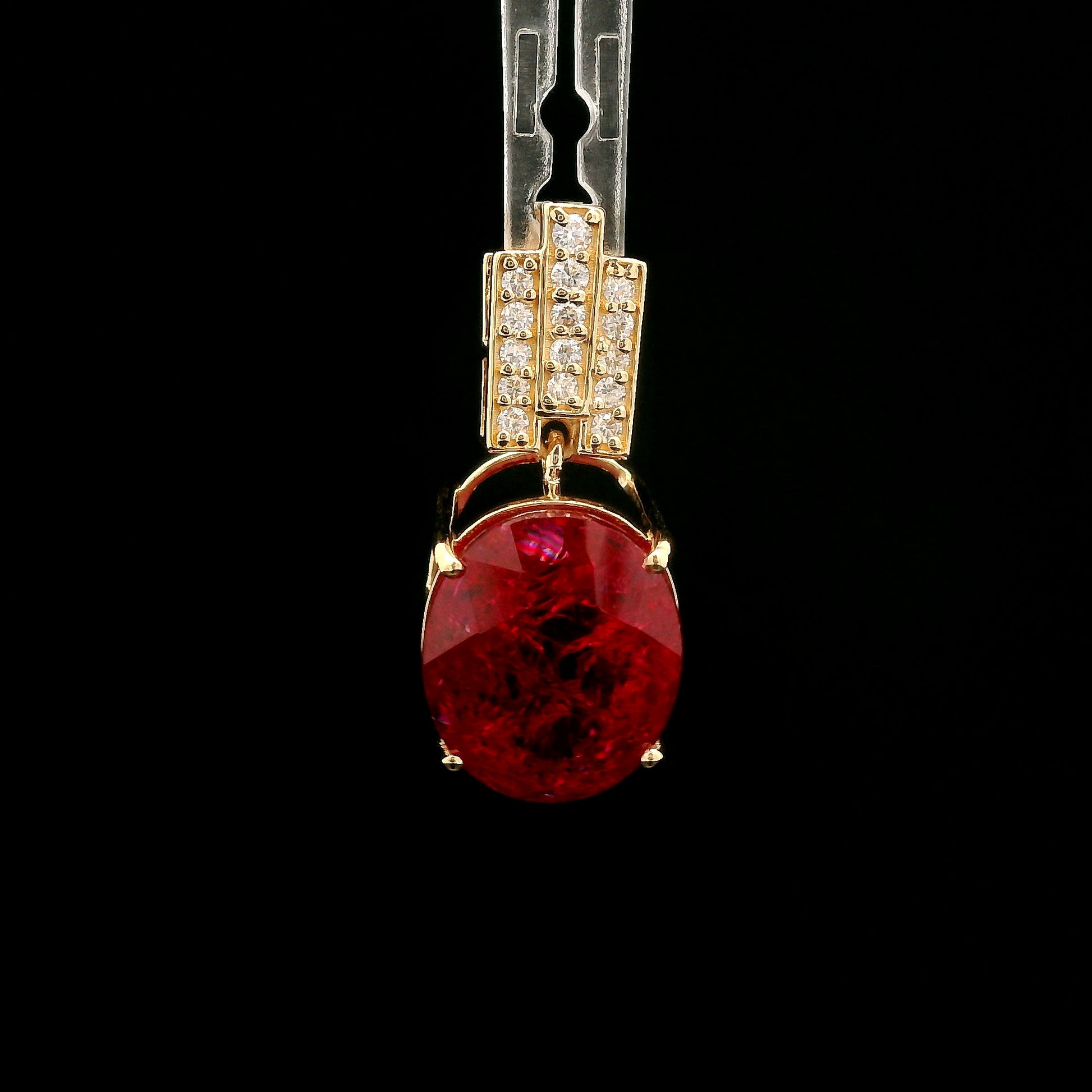 7.41 Ct Oval Mixed Cut Lab Grown Ruby 14K Gold Pendant