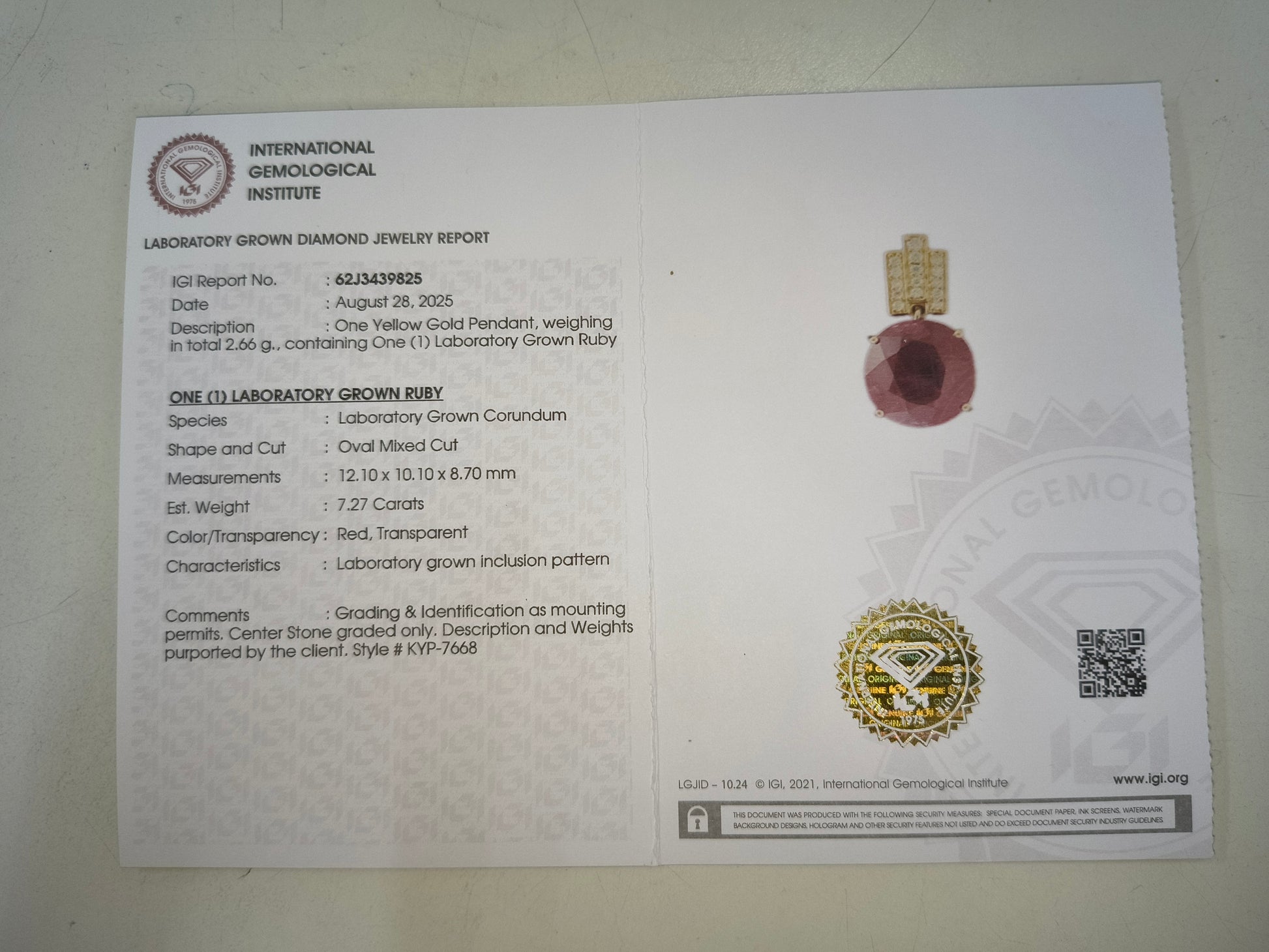 7.41 Total Carat Lab Grown Ruby 14K Gold Pendant