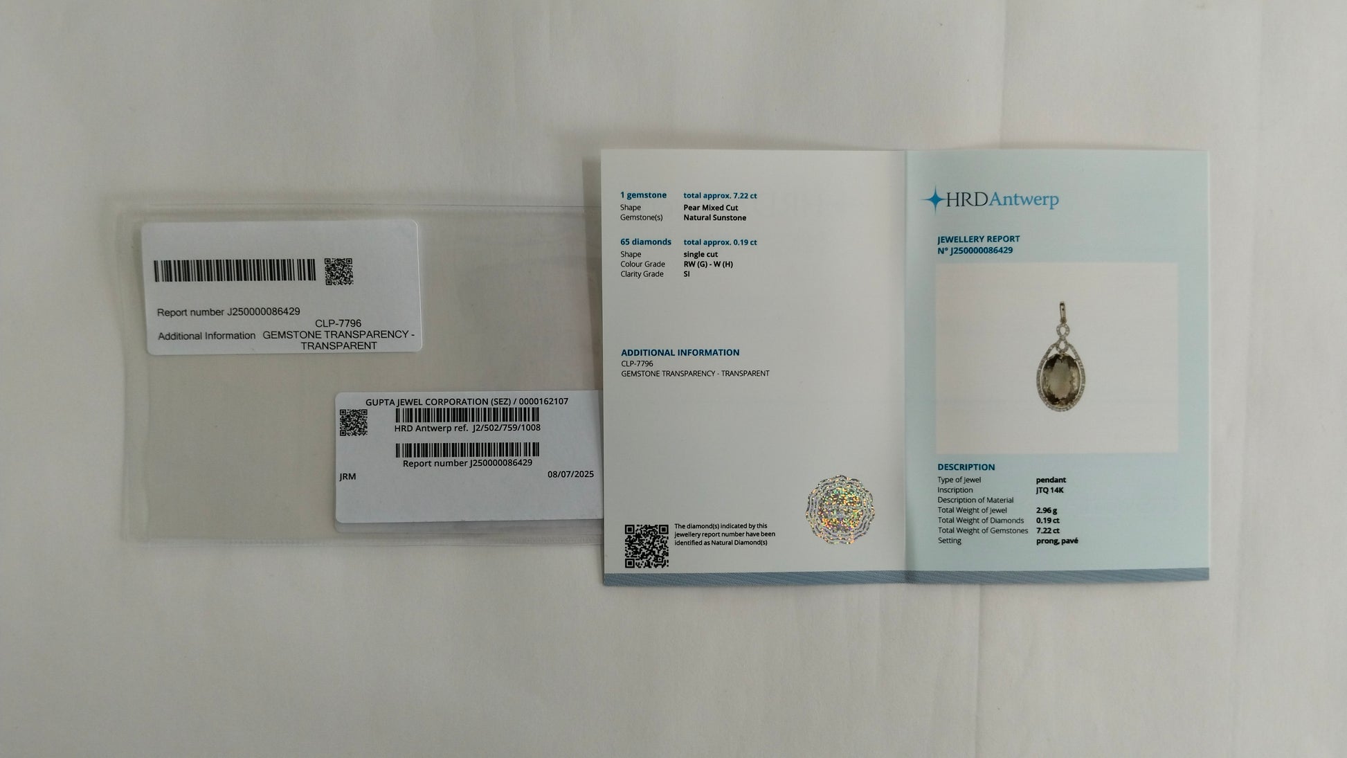 7.41 Ct Pear Mixed Cut Natural Sunstone 14K Gold Pendant