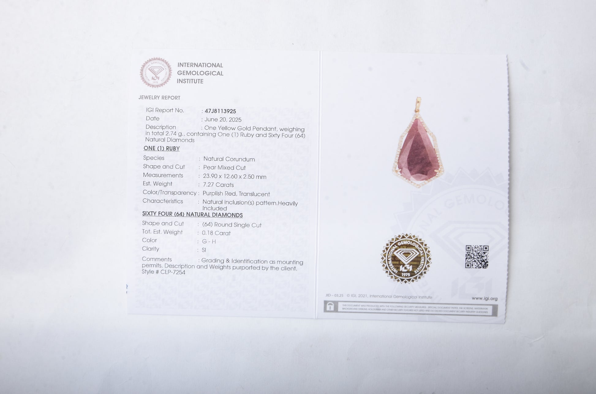 - Lab Name: International Gemological Institute (IGI)