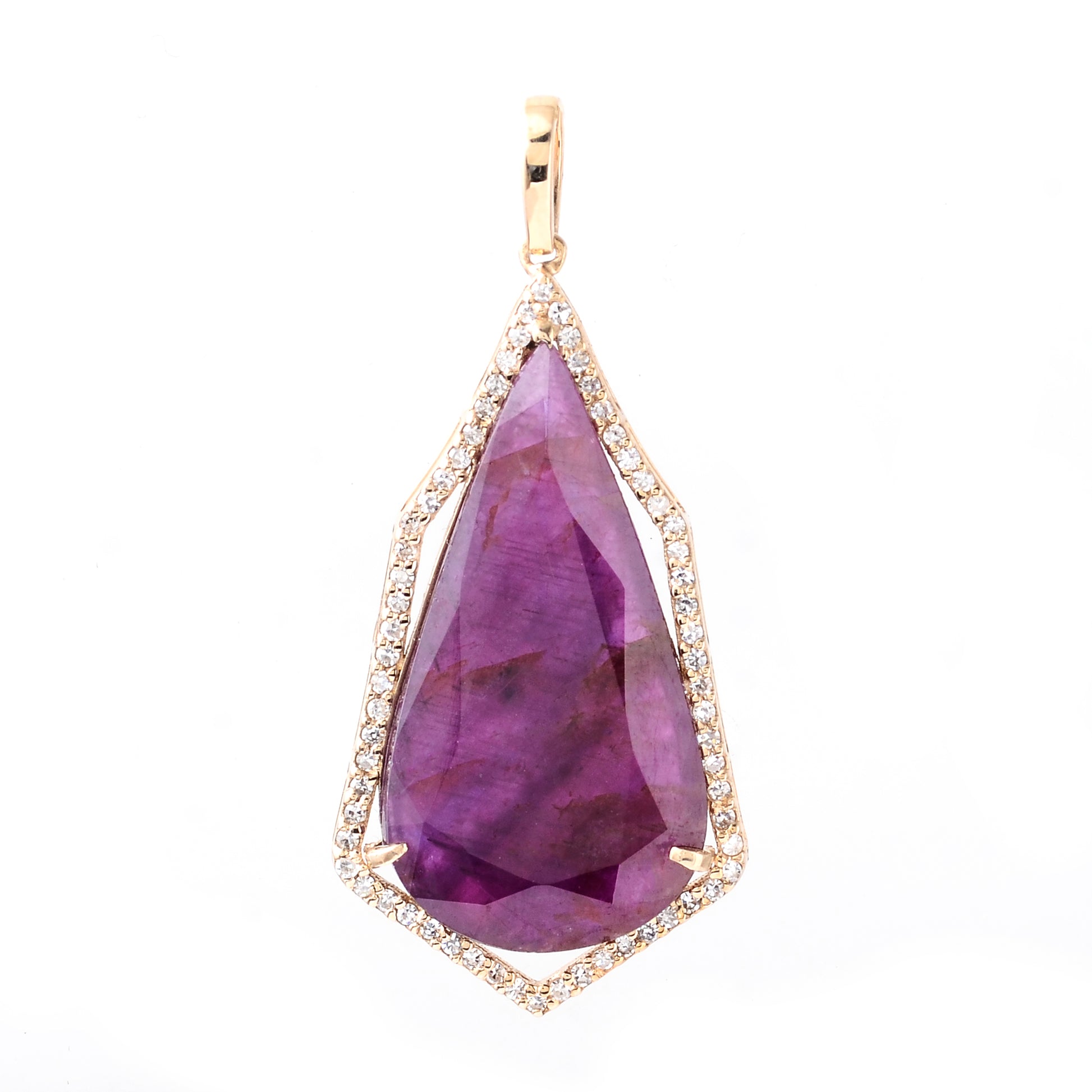7.45 Ct Pear Mixed Cut Natural Corundum Ruby 14K Gold Pendant