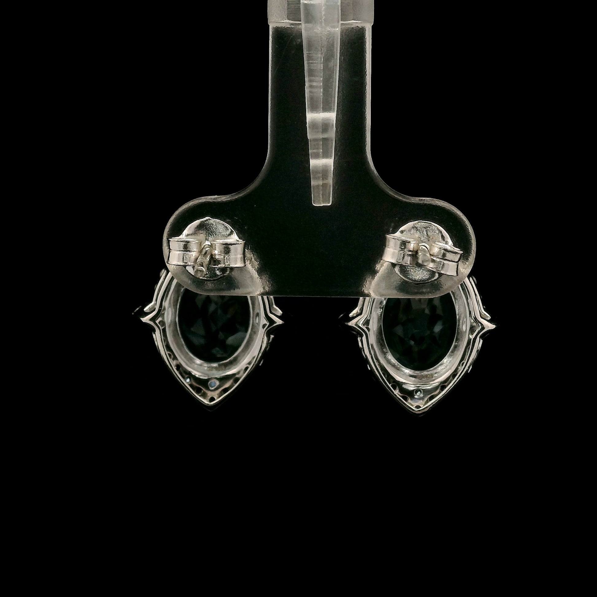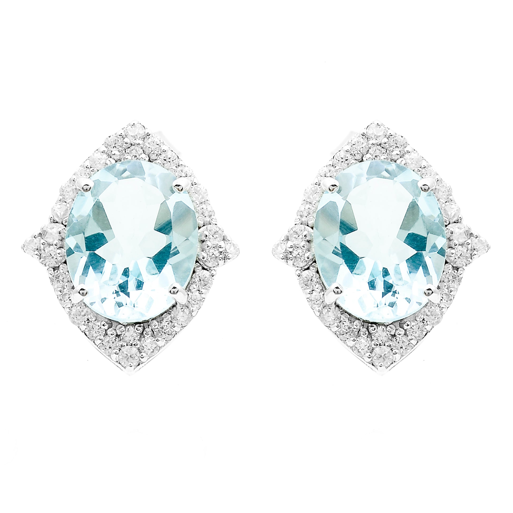 7.51 Ct Oval Blue Topaz, White Zircon 925 Sterling Silver Earrings