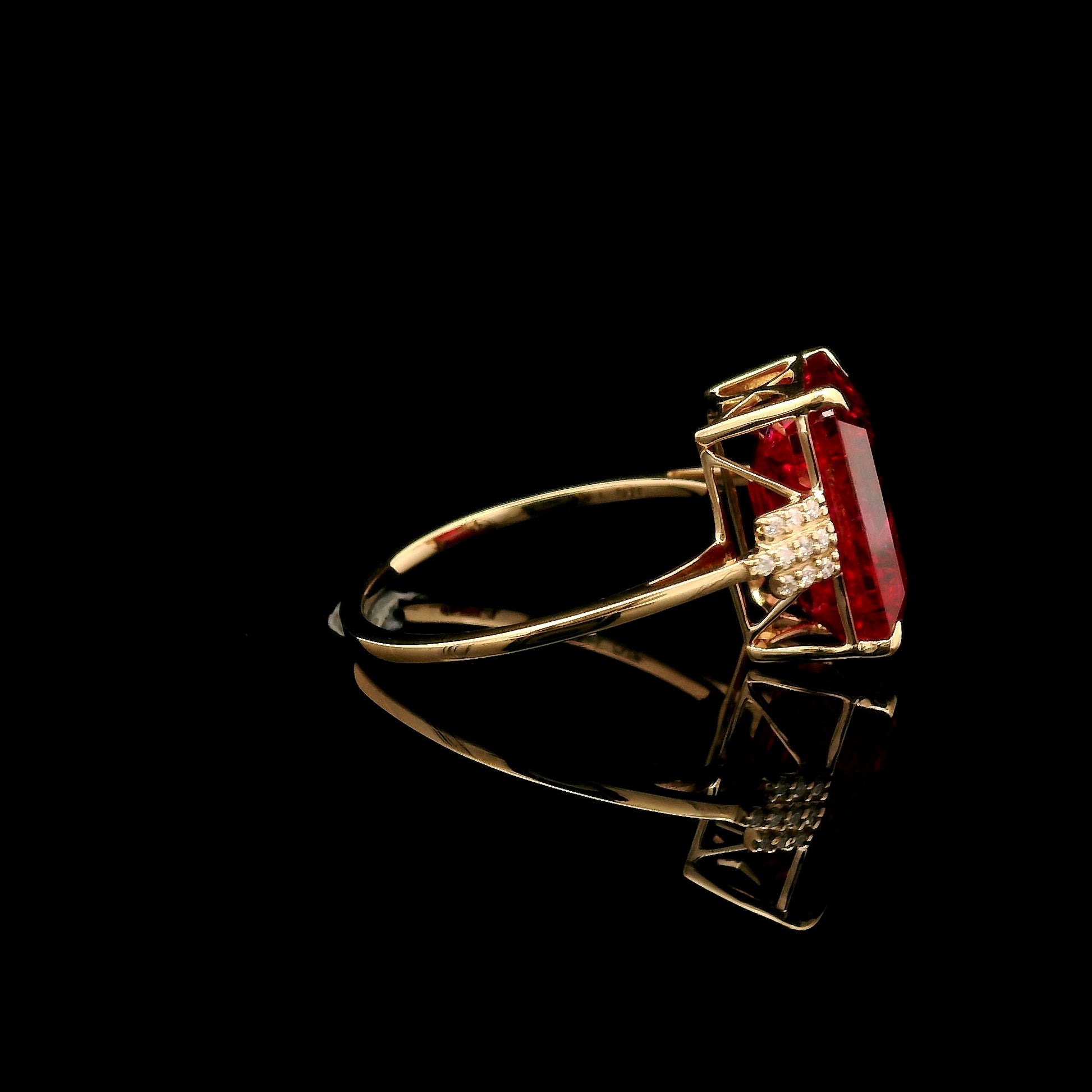 7.55 Ct Emerald Cut Lab Grown Ruby 14K Gold Ring