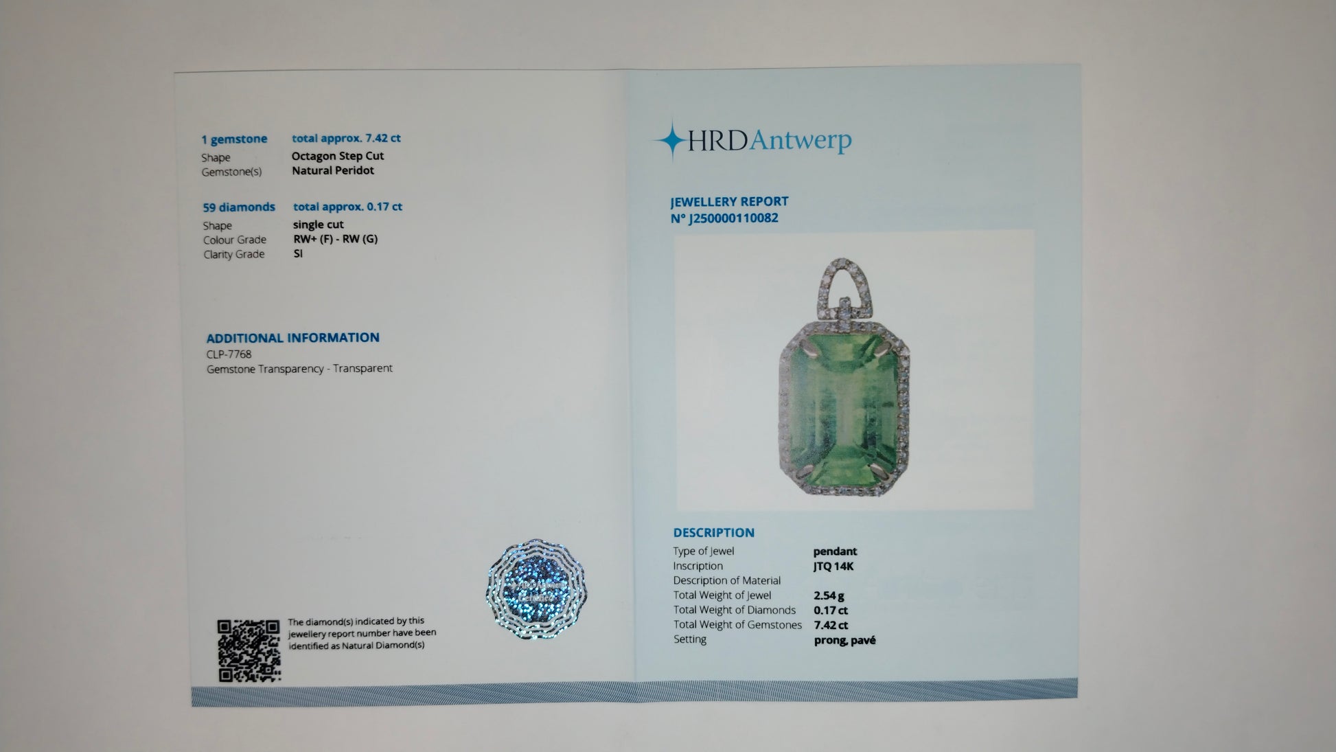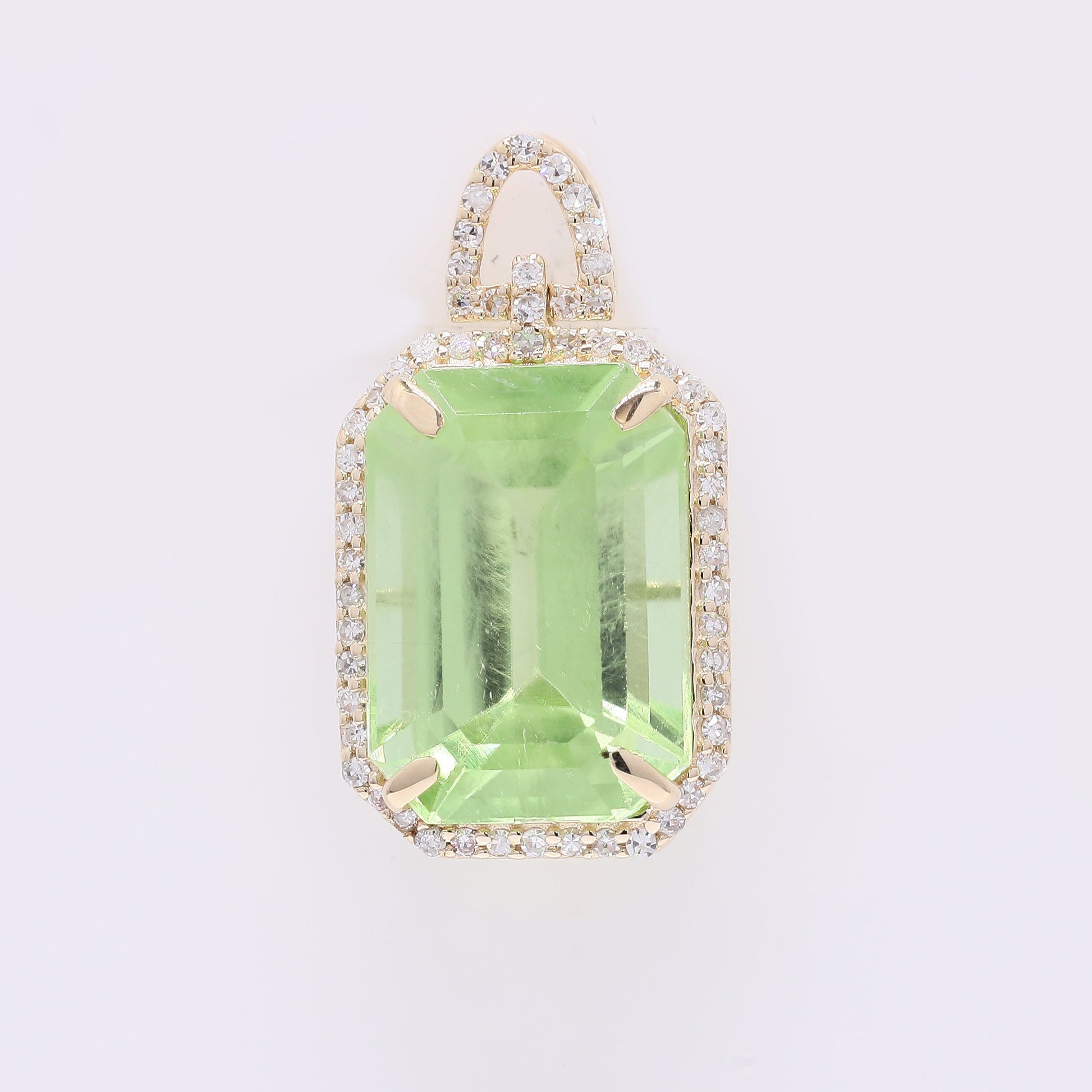 7.59 Ct Octagon Step Cut Natural Peridot 14K Gold Pendant