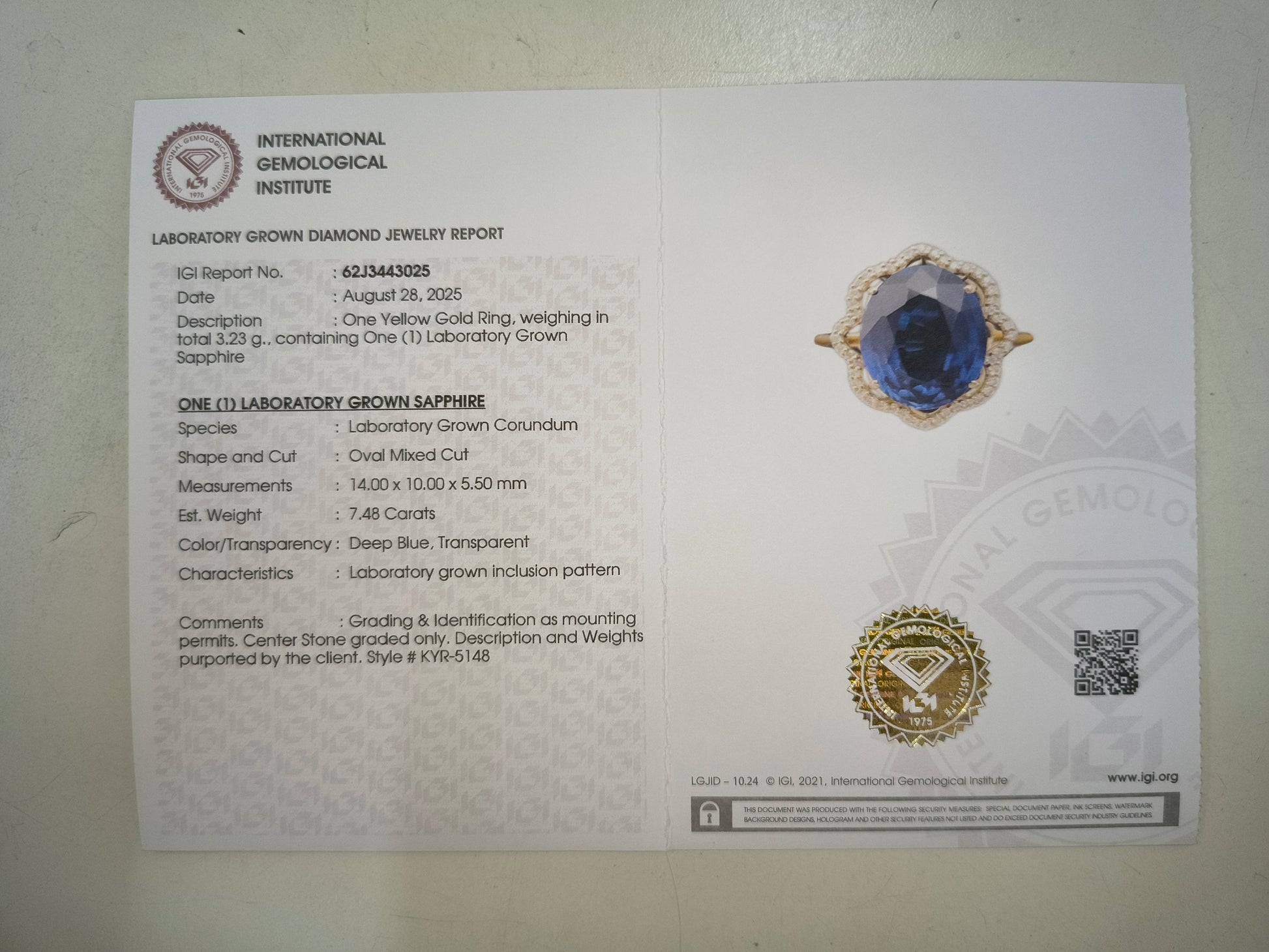 7.63 Total Carat Lab Grown Sapphire 14K Gold Ring