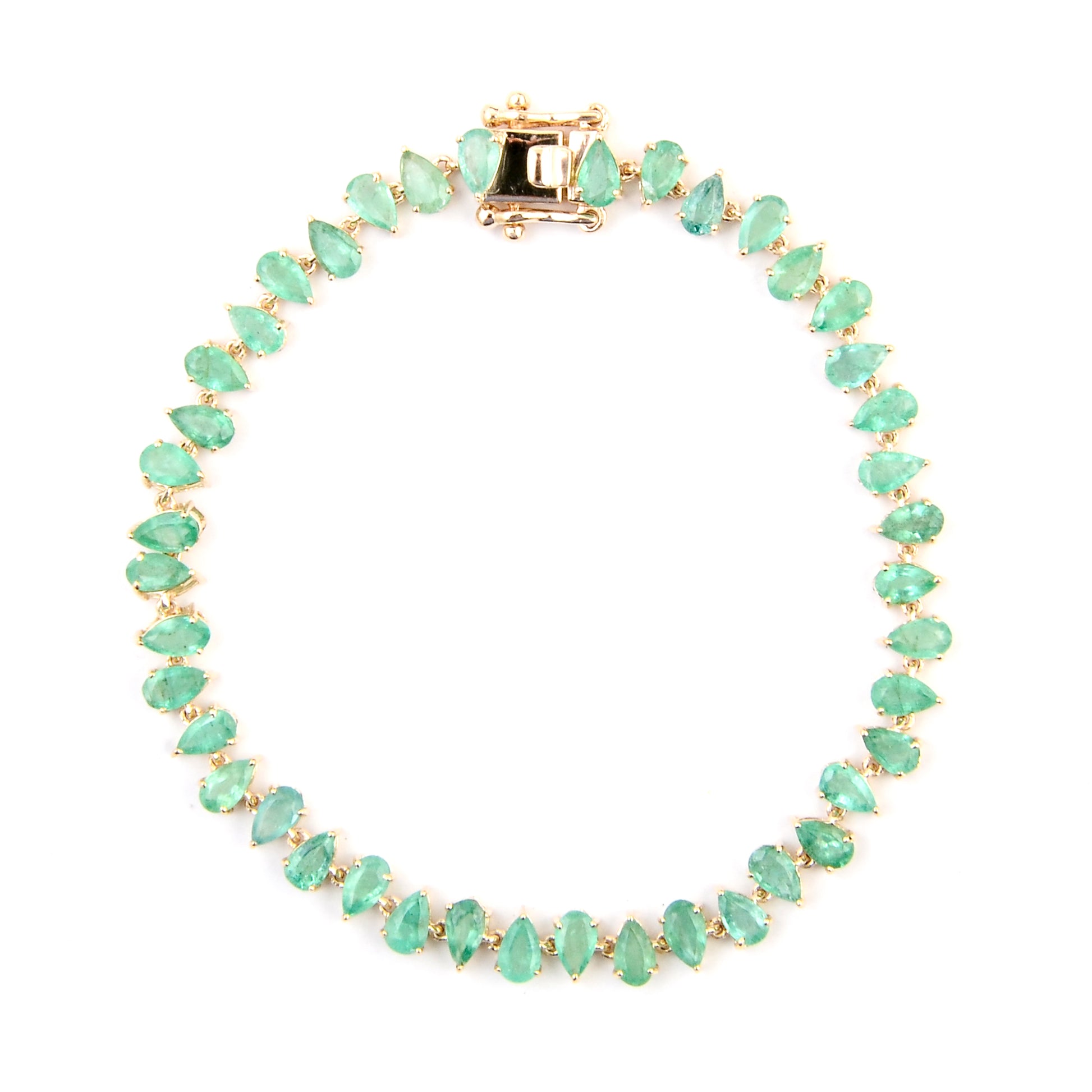 7.68 Ct Pear Emerald 14K Gold Braclet