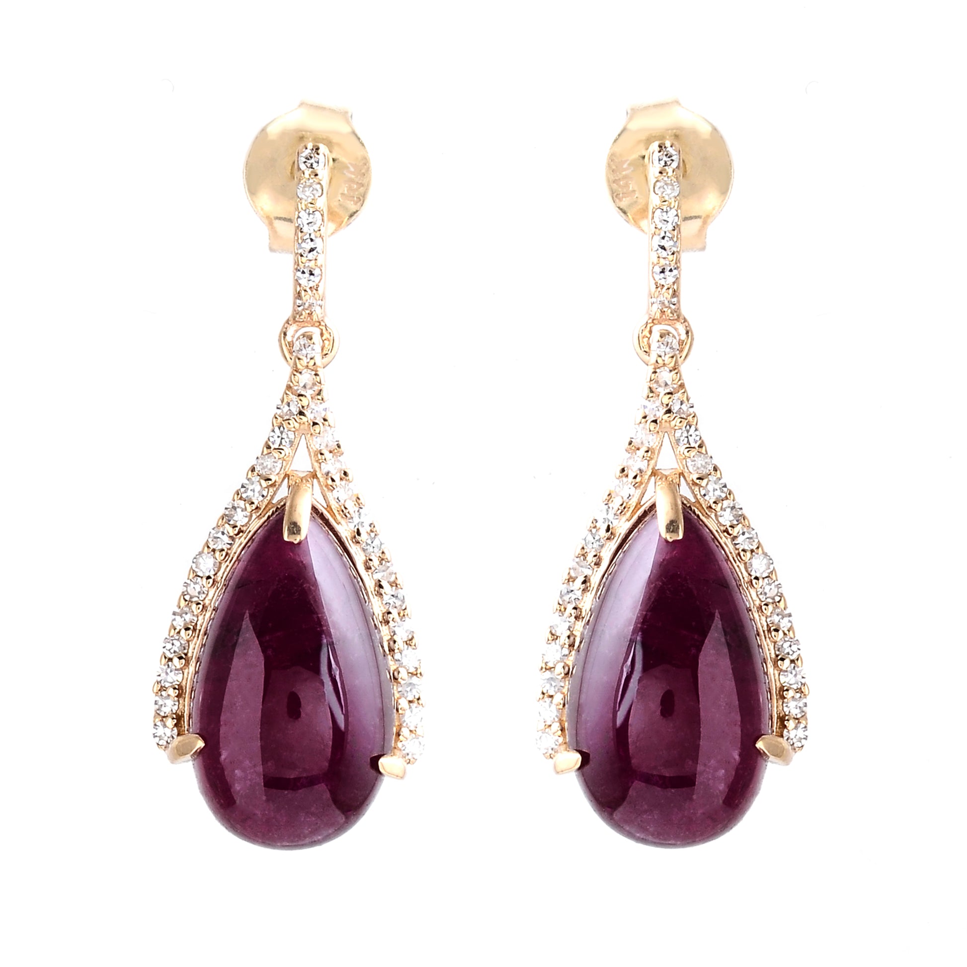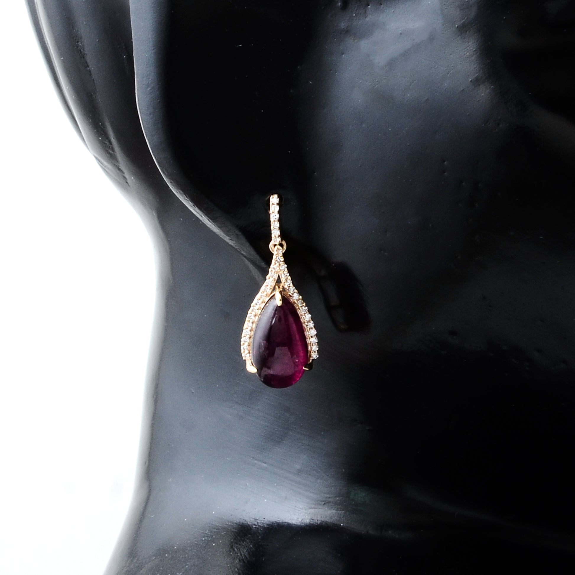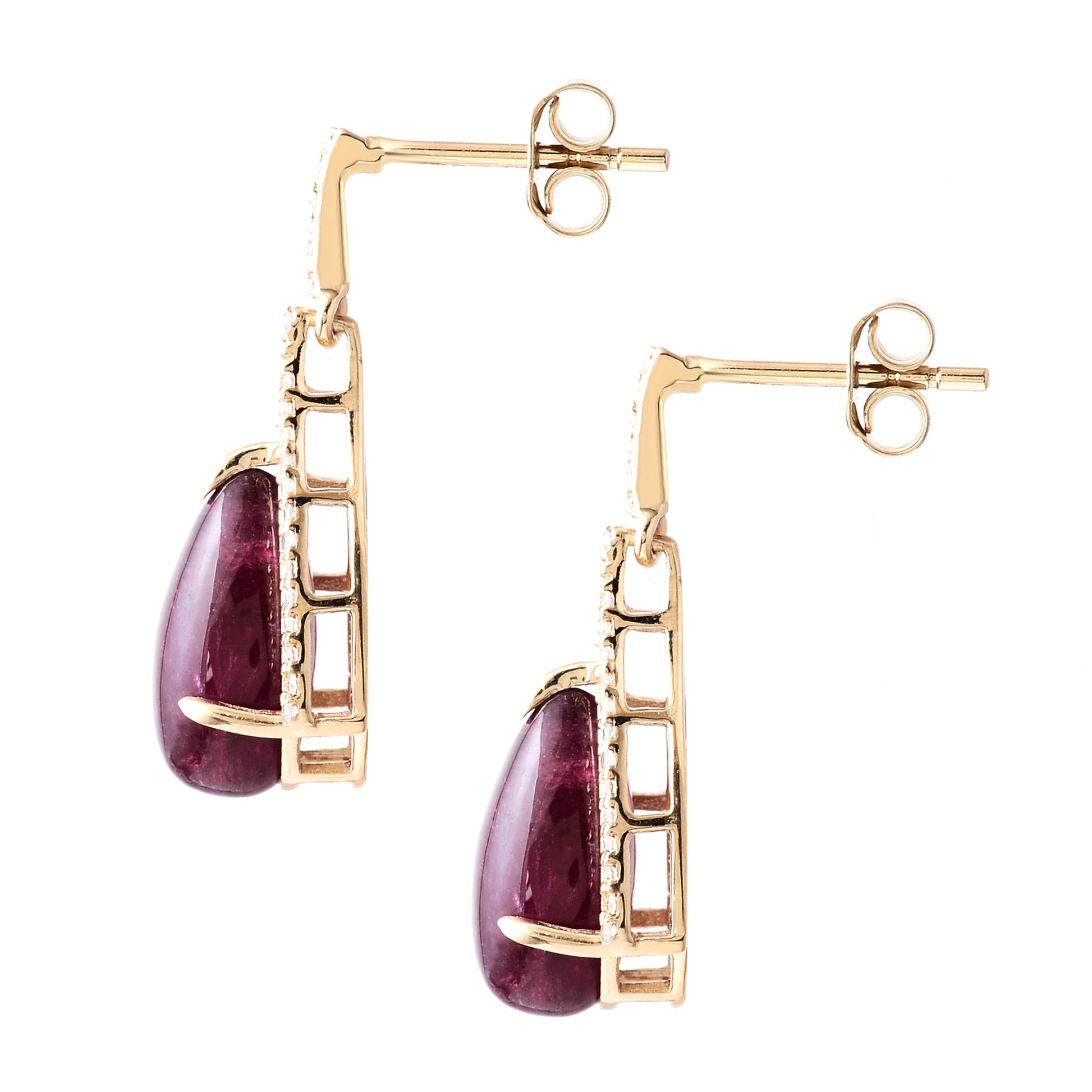 7.75 Ct Pear Cabochon Natural Tourmaline 14K Gold Earrings