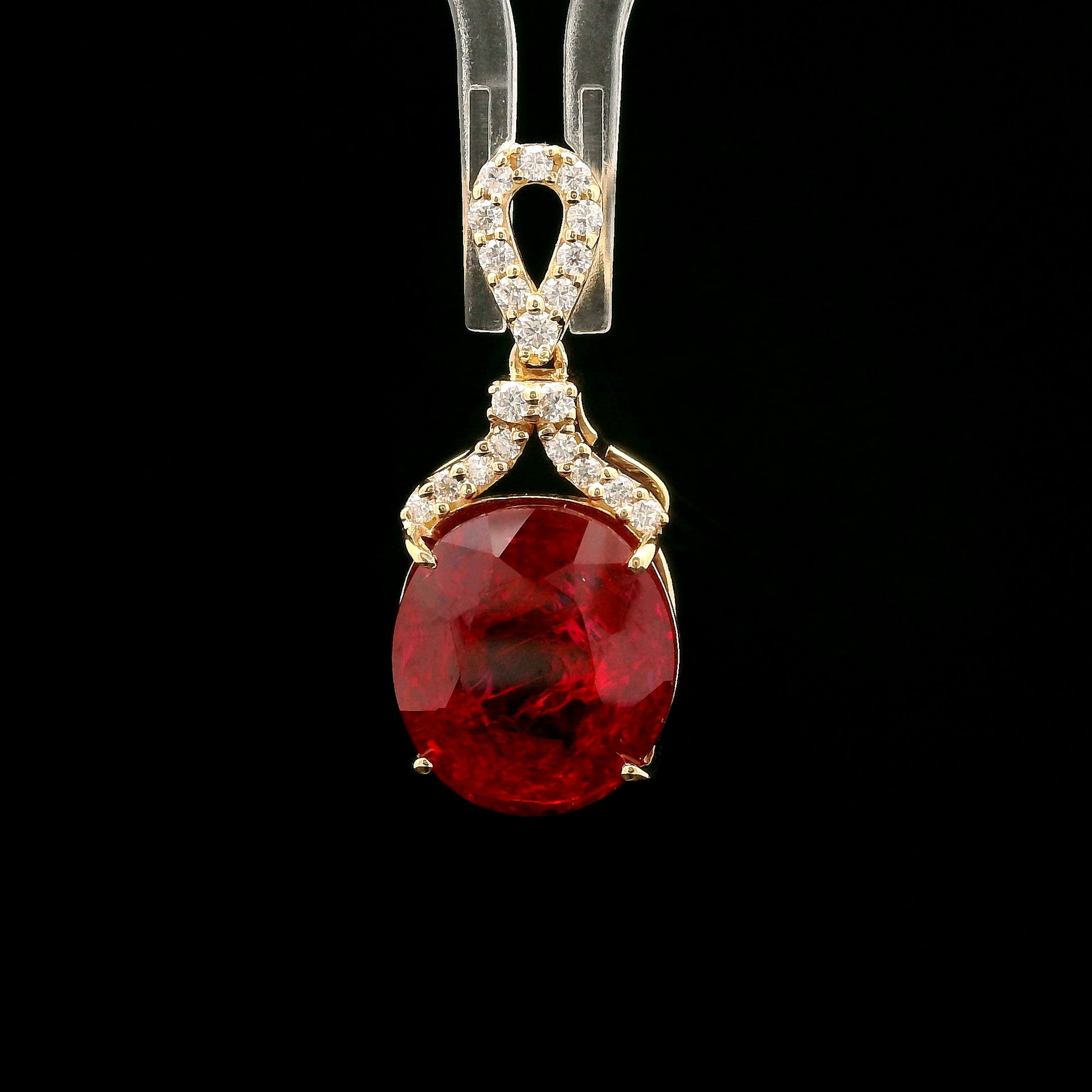 7.98 Total Carat Lab Grown Ruby 14K Gold Pendant