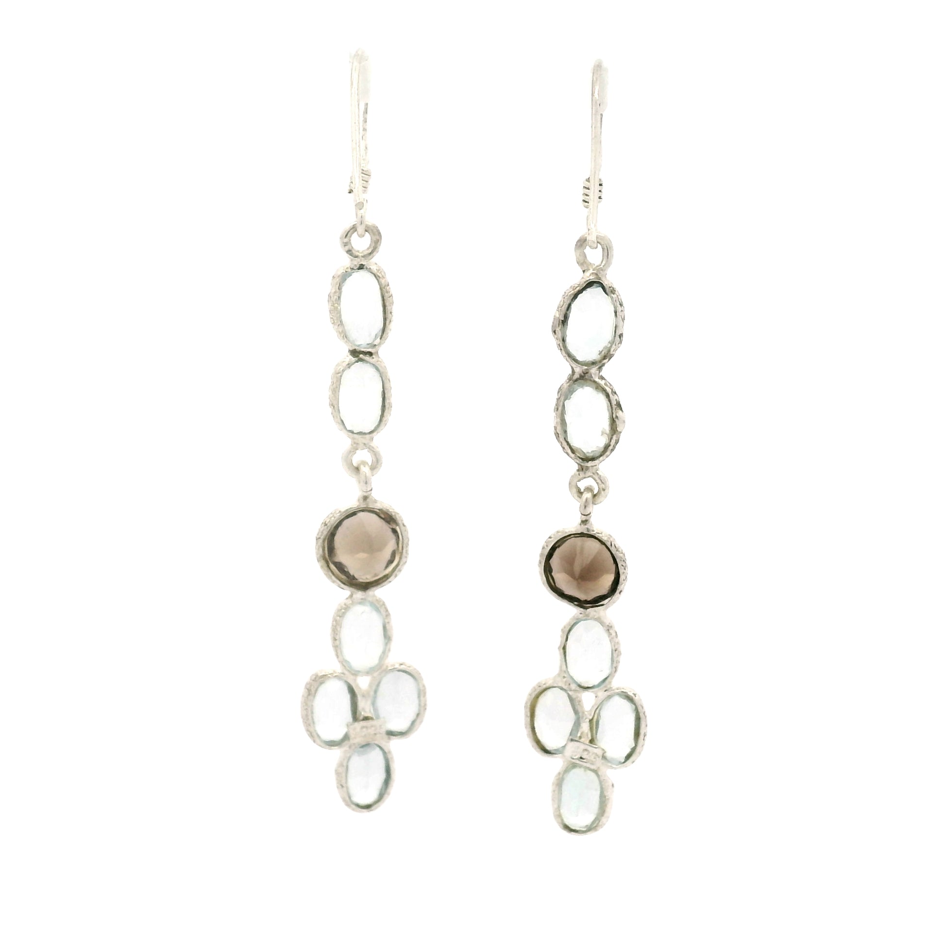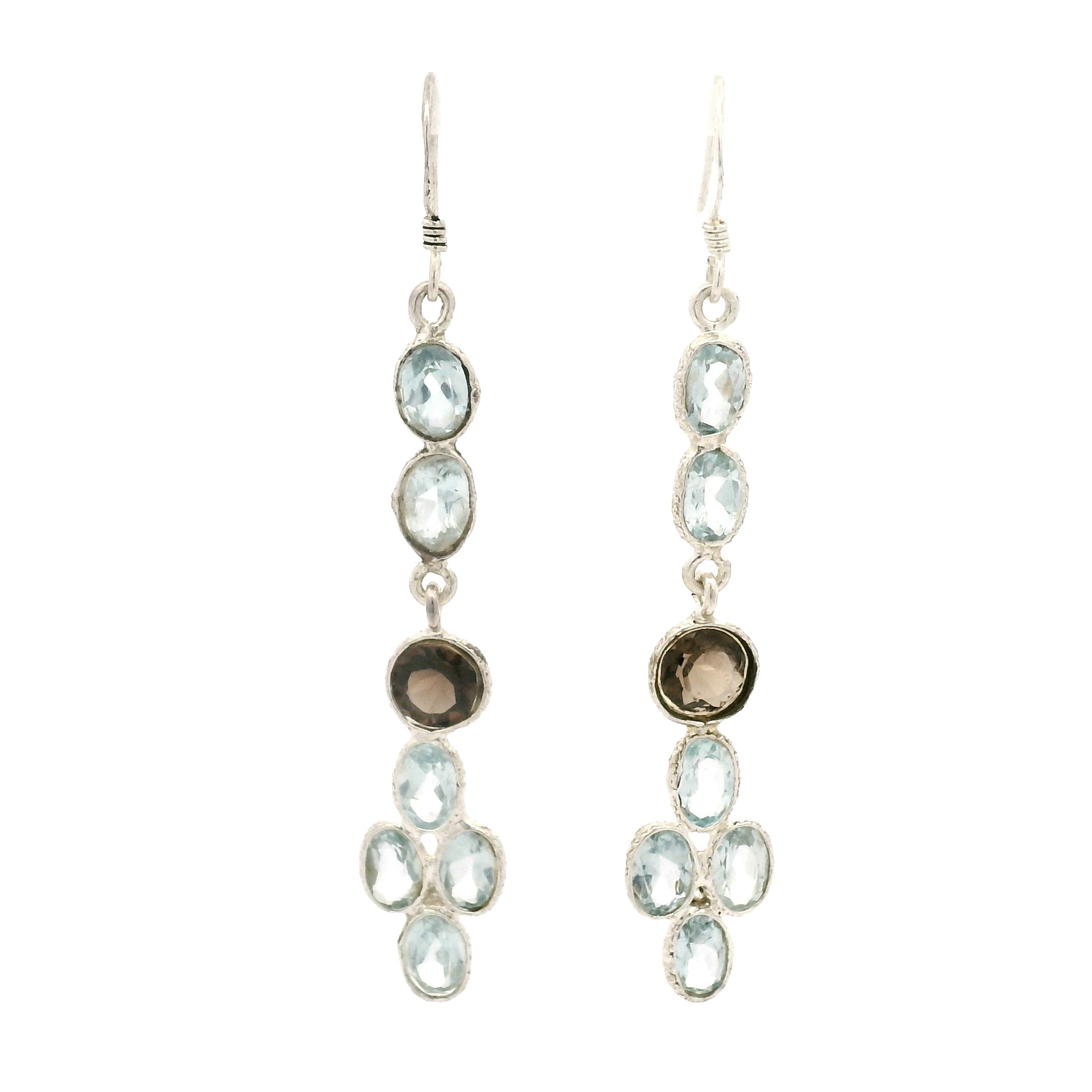 8.00 Ct Smoky Quartz, Blue Topaz 925 Sterling Silver Earrings