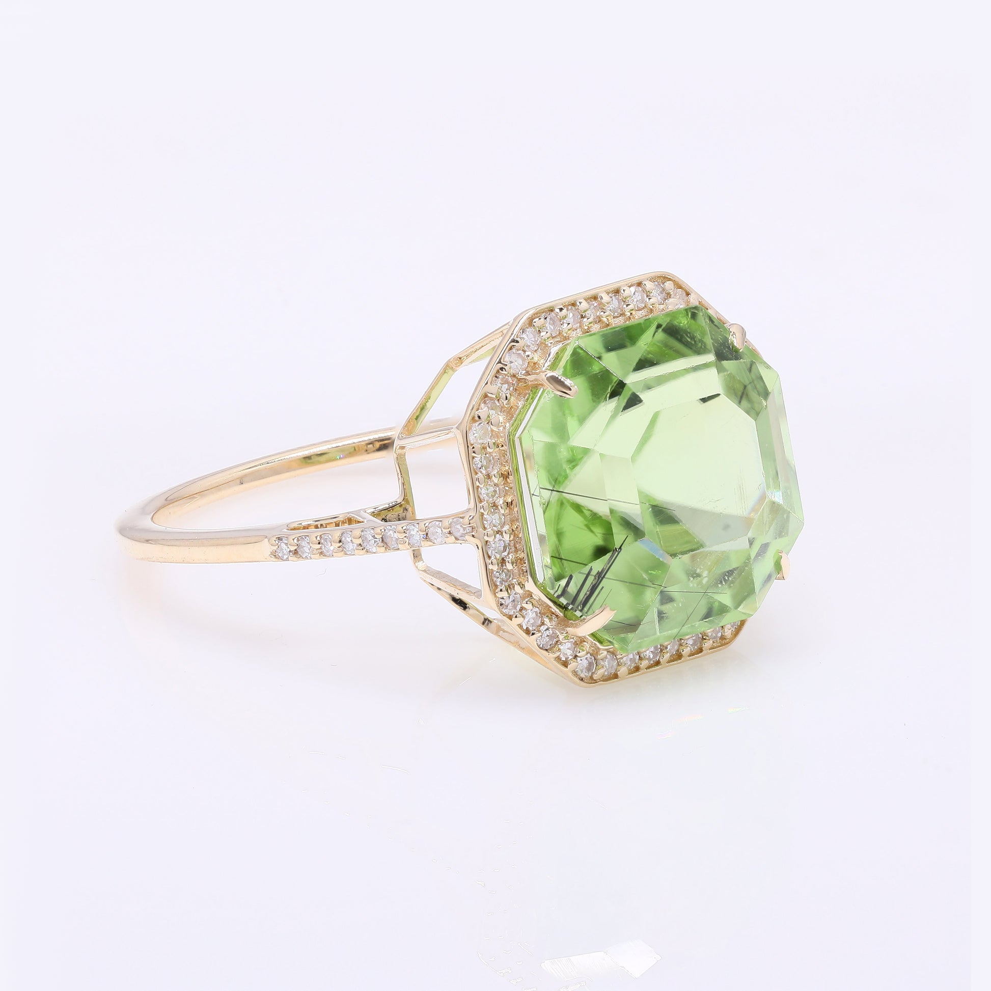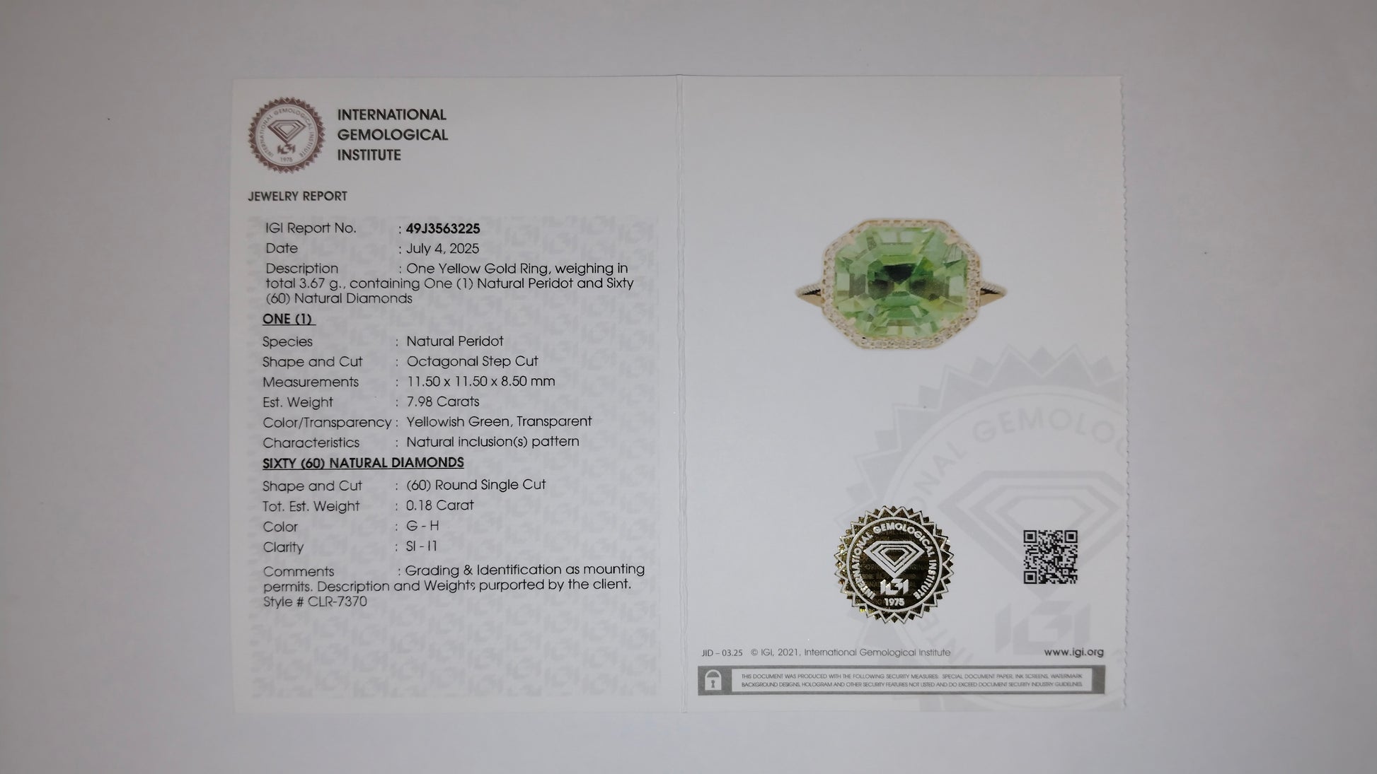 8.16 Ct Octagonal Step Ct Natural Peridot 14K Gold Ring