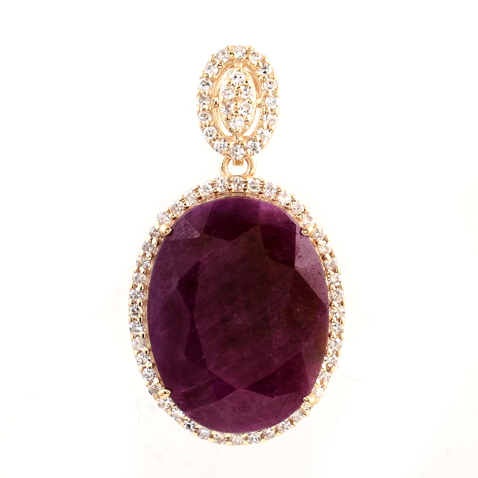 8.16 Ct Oval Mixed Cut Natural Corundum Ruby 14K Gold Pendant