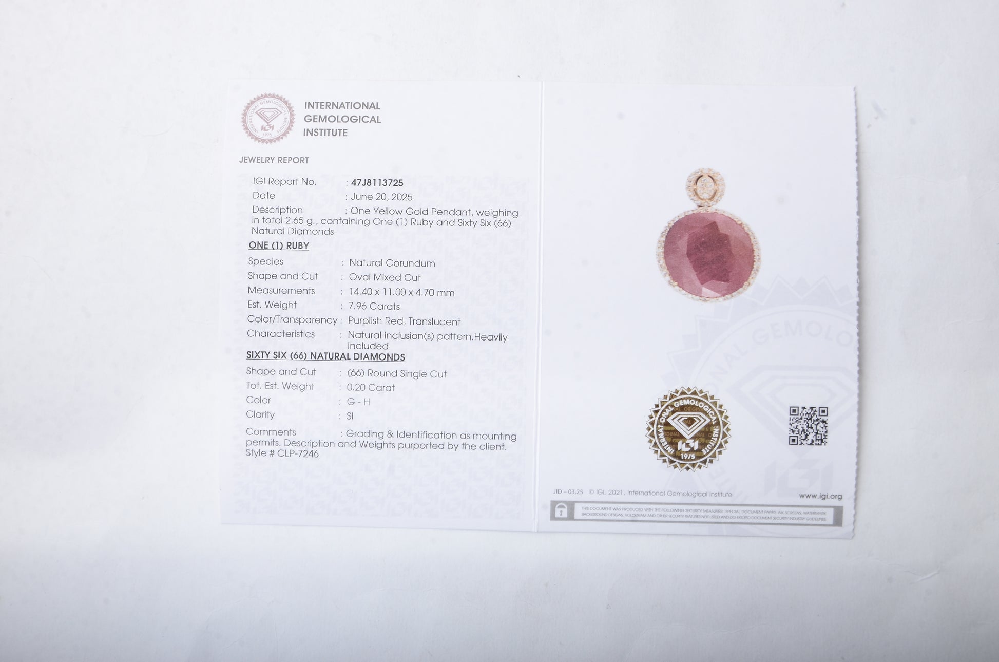 8.16 Total Carat Natural Corundum Ruby 14K Gold Pendant