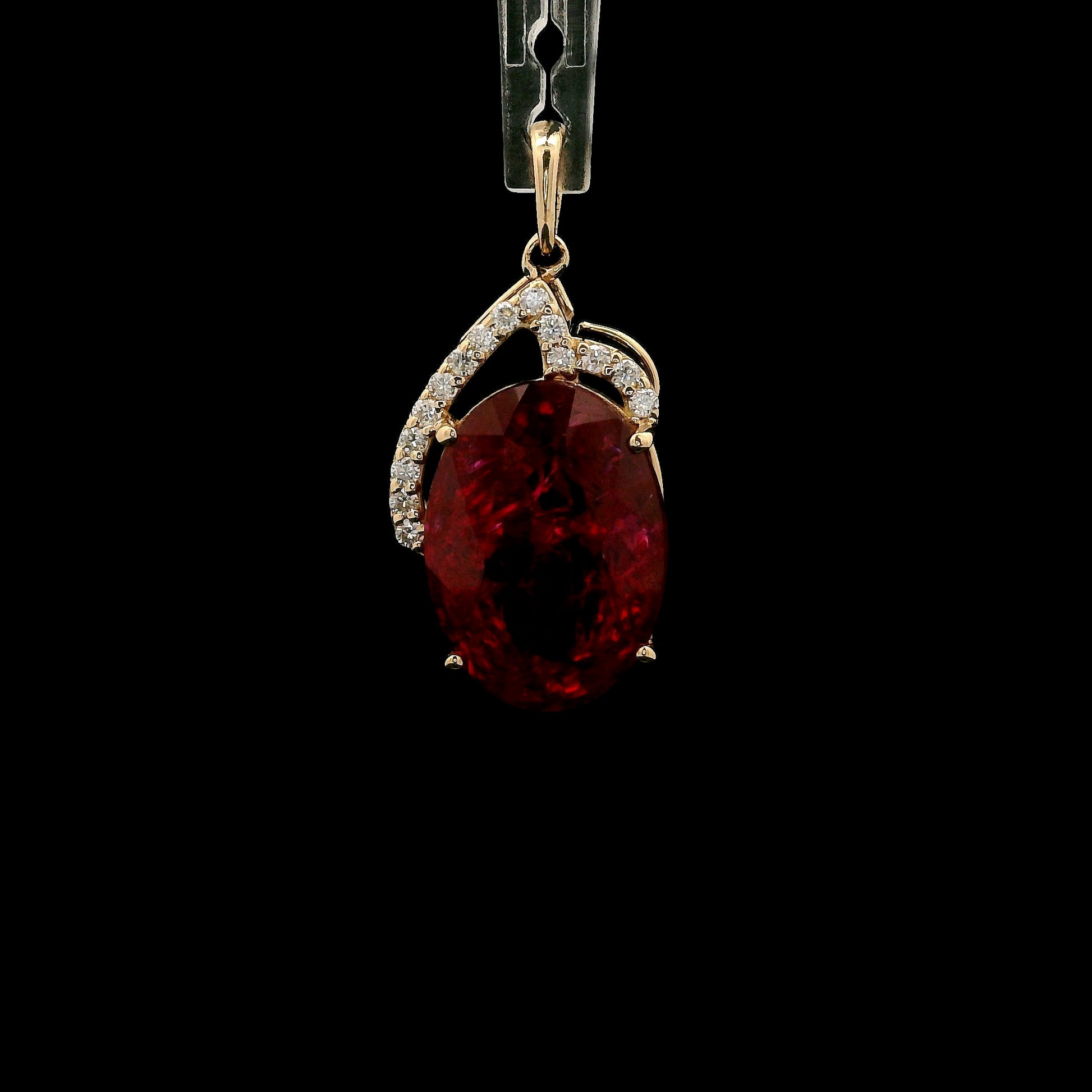 8.17 Ct Oval Mixed Cut Lab Grown Ruby 14K Gold Pendant
