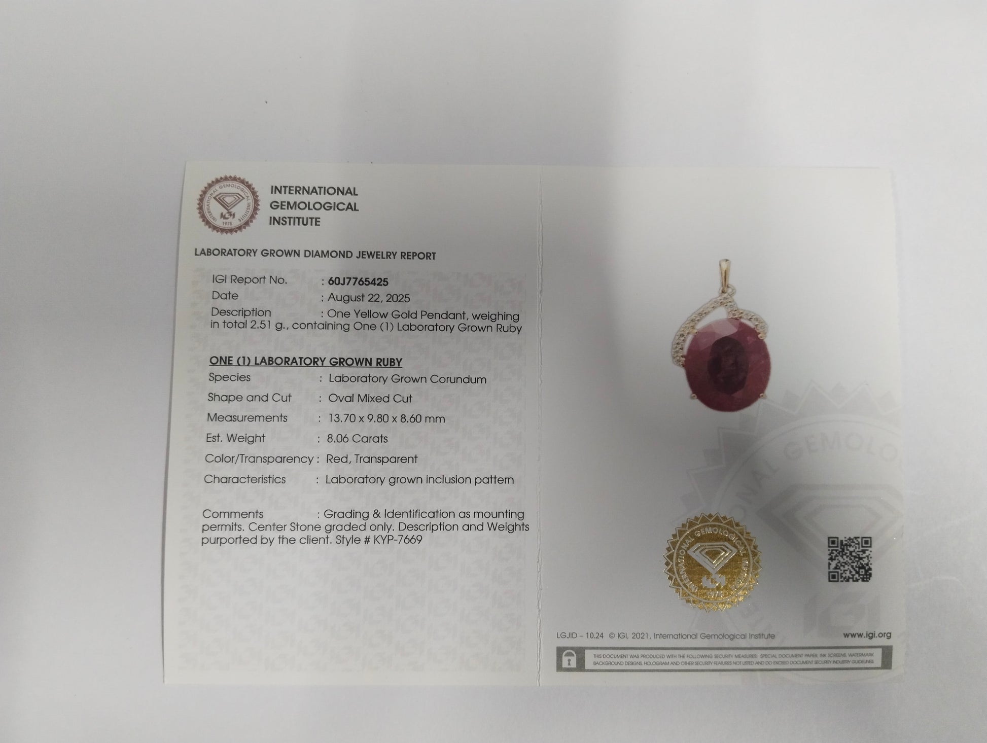 - Lab Name: International Gemological Institute (IGI)