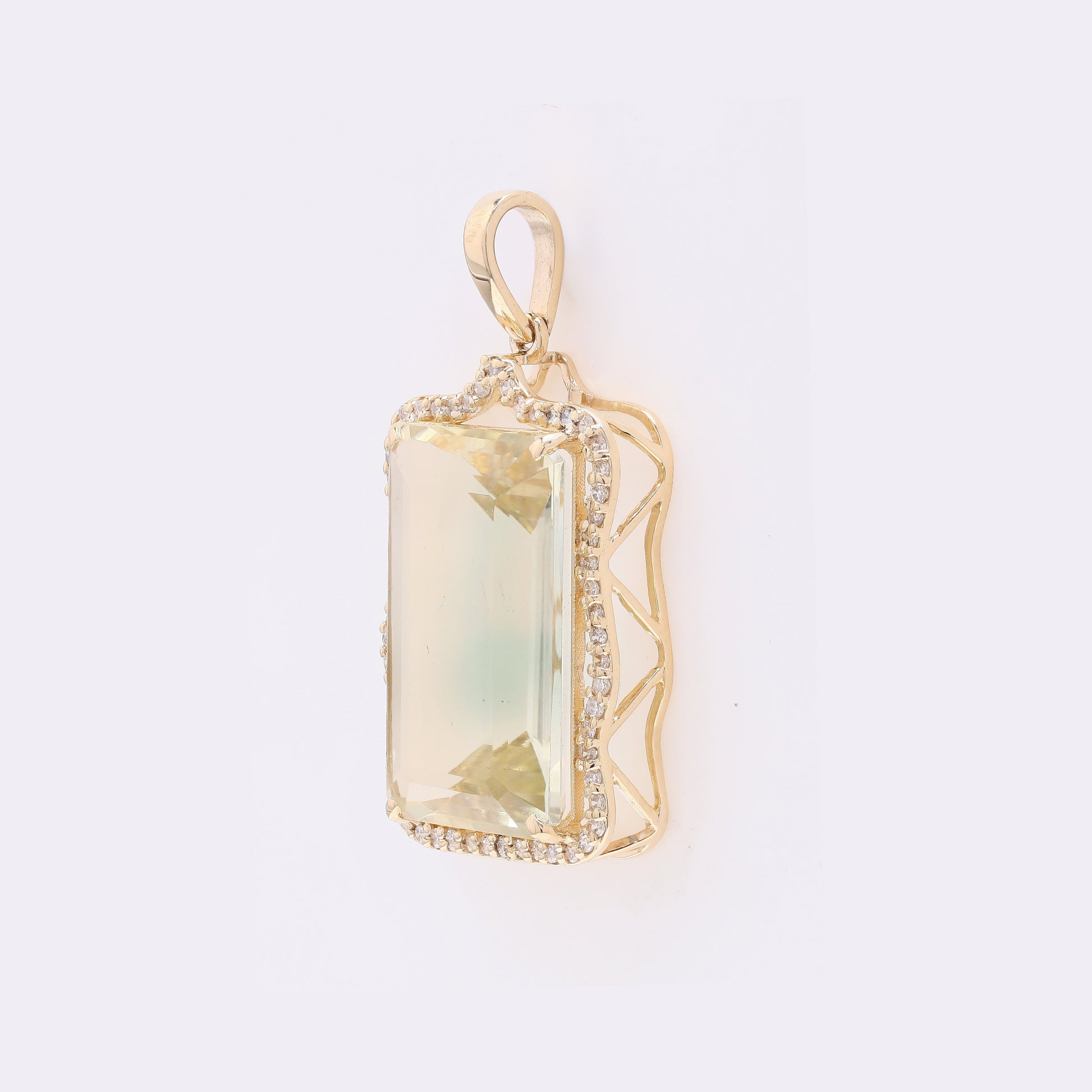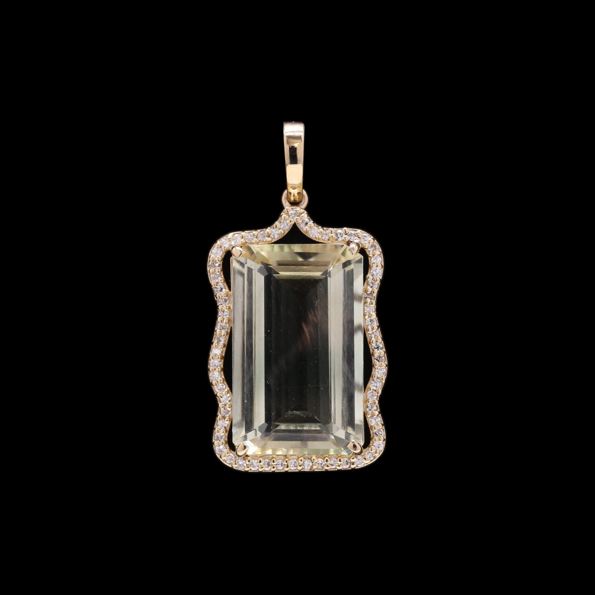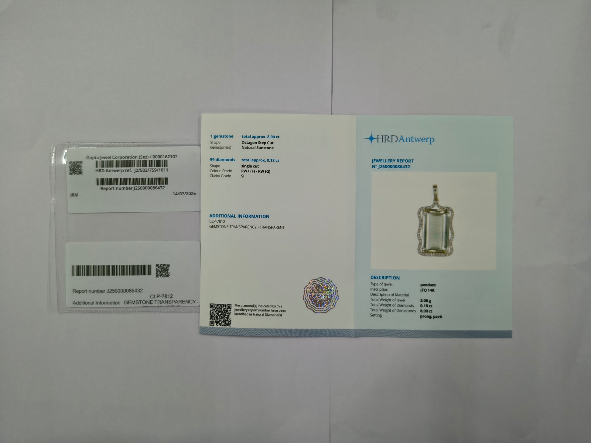 8.18 Ct Octagon Step Cut Natural Sunstone 14K Gold Pendant