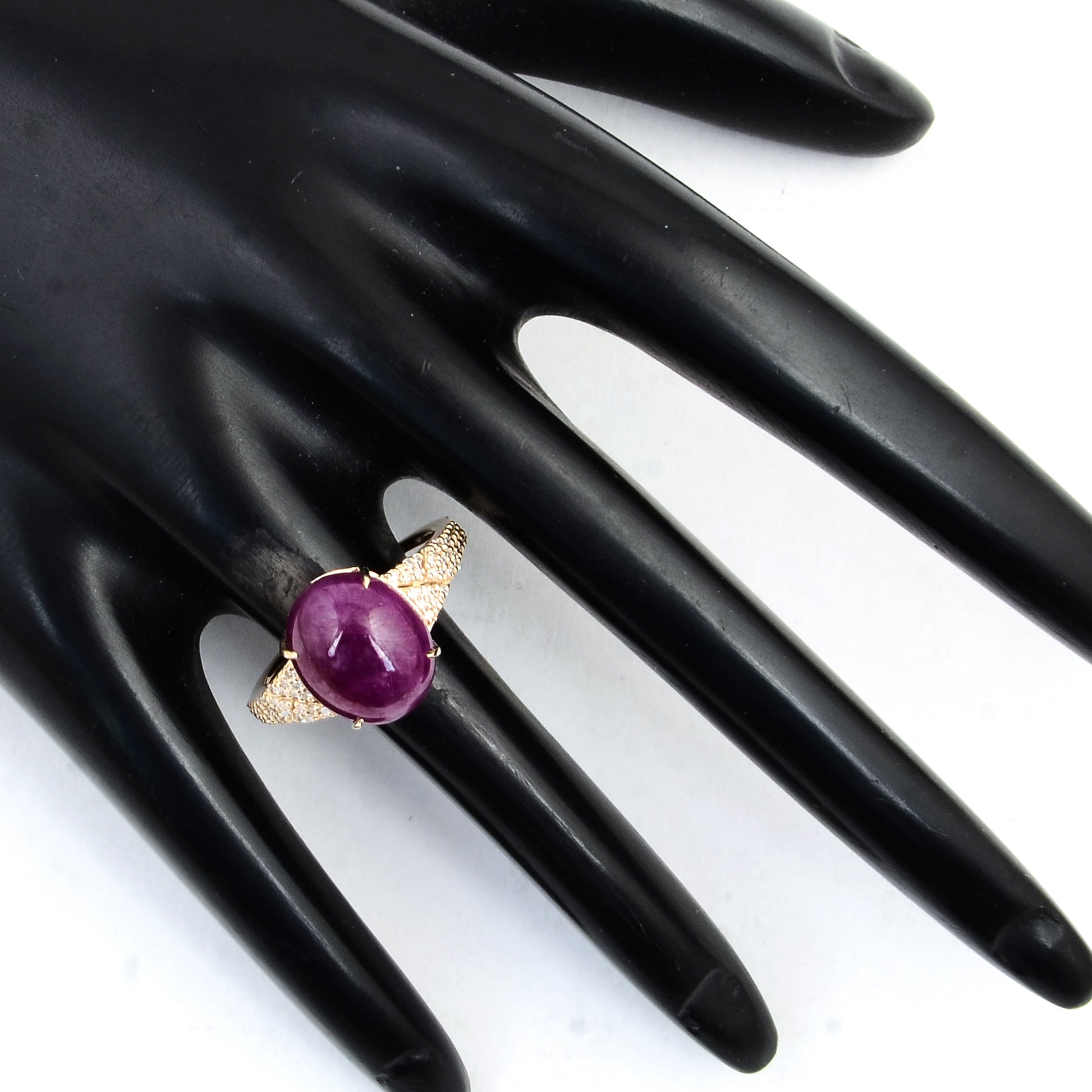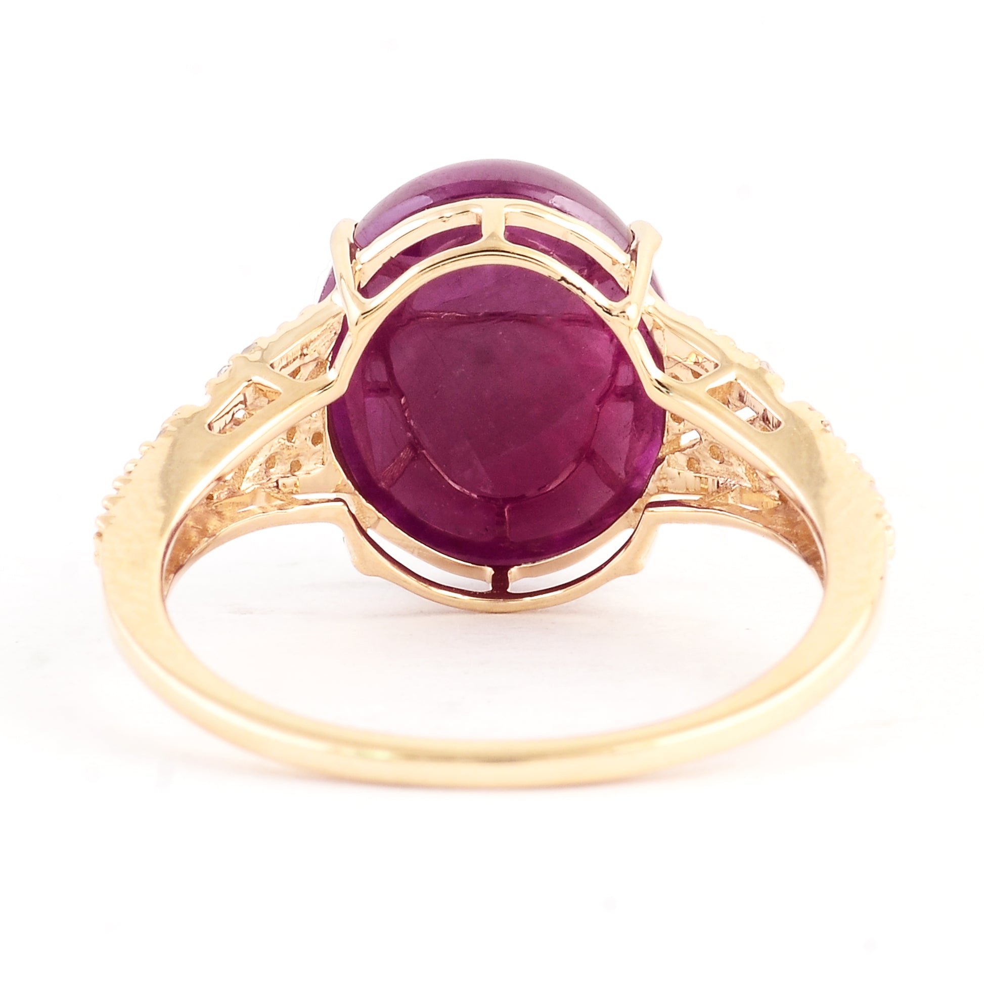 8.29 Ct Oval Cabochon Natural Corundum Ruby 14K Gold Ring