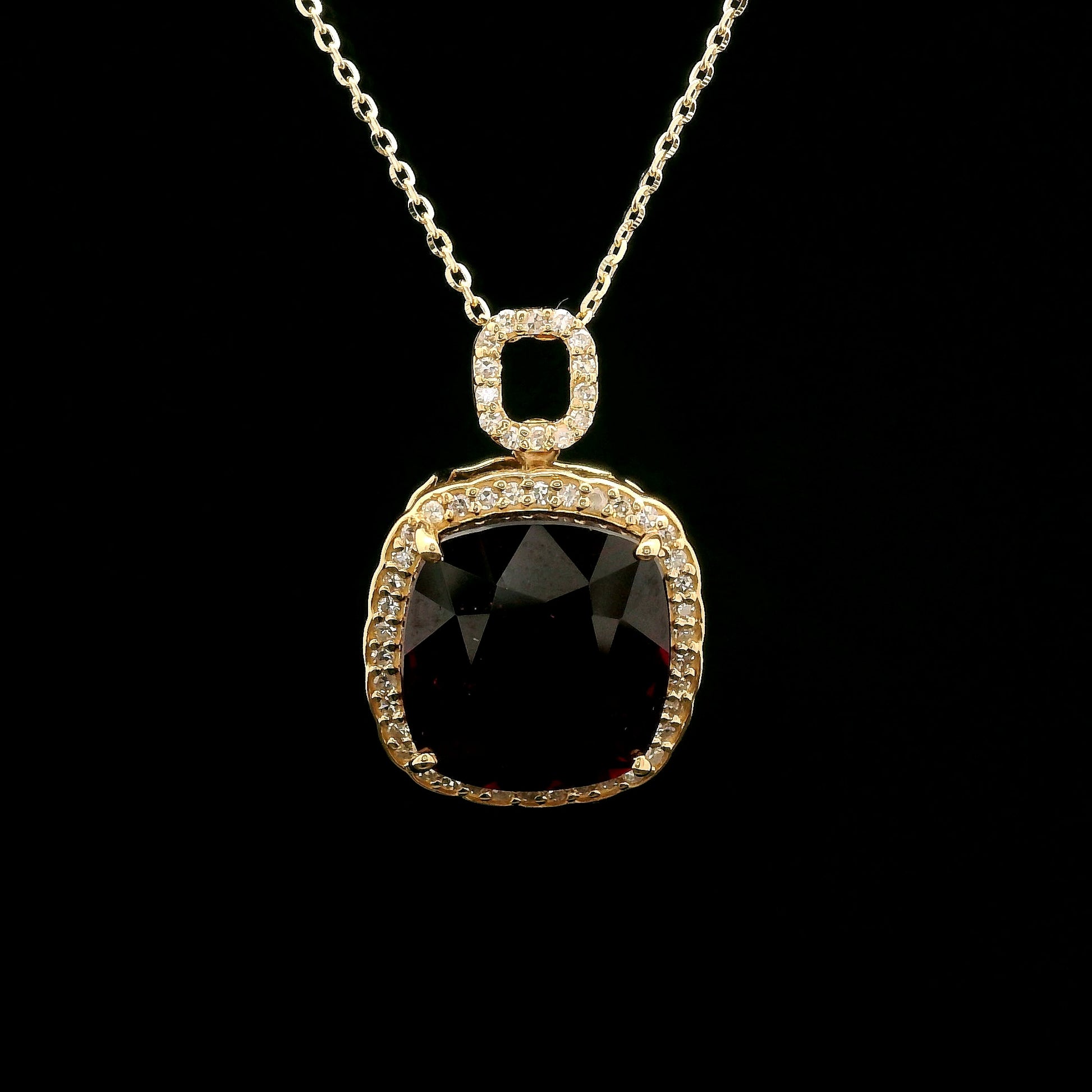 8.36 Ct Cushion Rhodolite 14K Gold Pendant