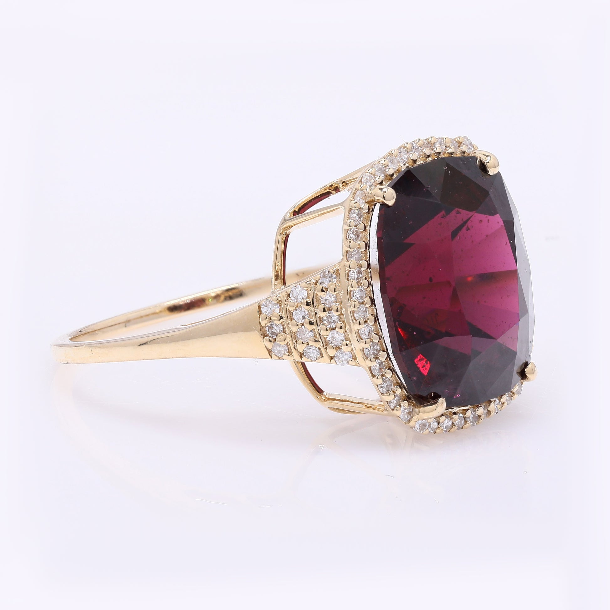 8.37 Ct Cushion Mixed Cut Natural Rhodolite 14K Gold Ring