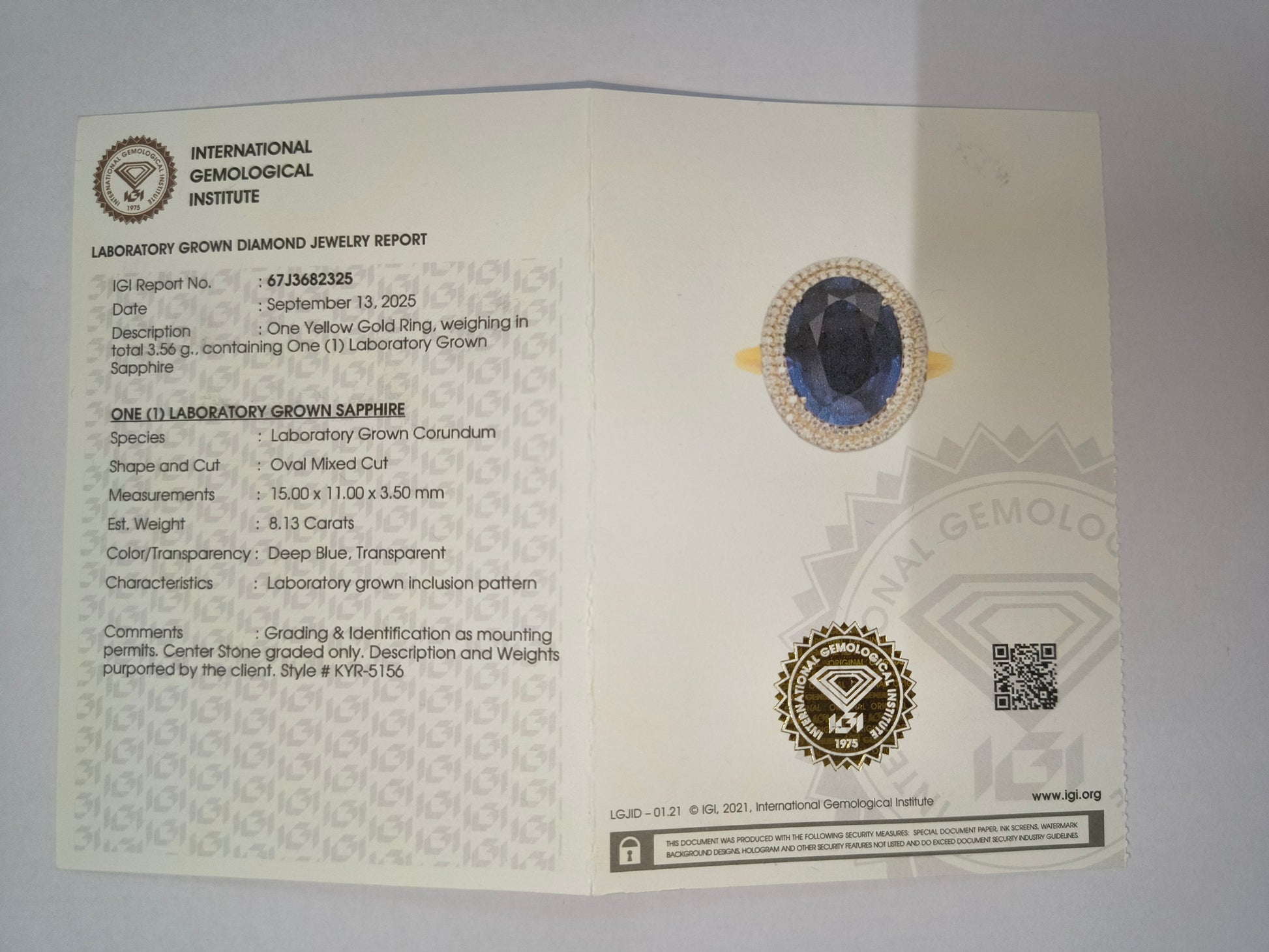 8.44 Total Carat Lab Grown Sapphire 14K Gold Ring