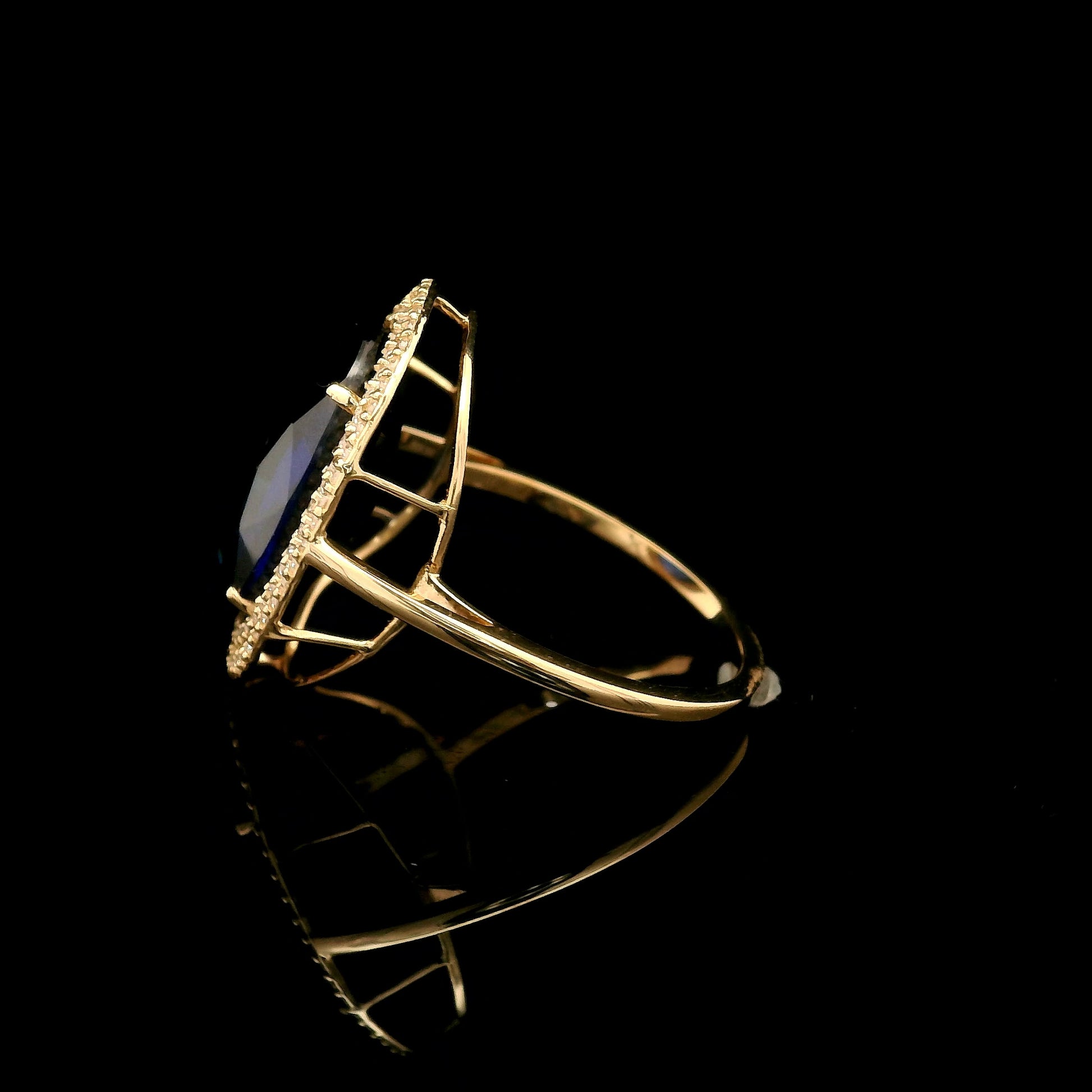 8.44 Ct Oval Mixed Cut Lab Grown Sapphire 14K Gold Ring