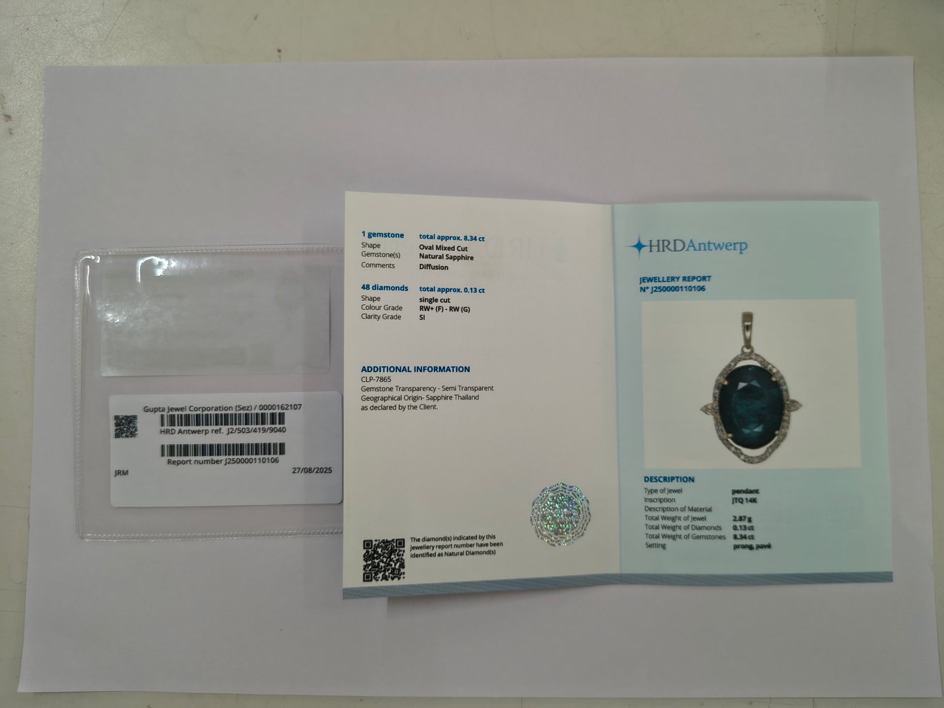 8.47 Ct Oval Mixed Cut Natural Sapphire 14K Gold Pendant