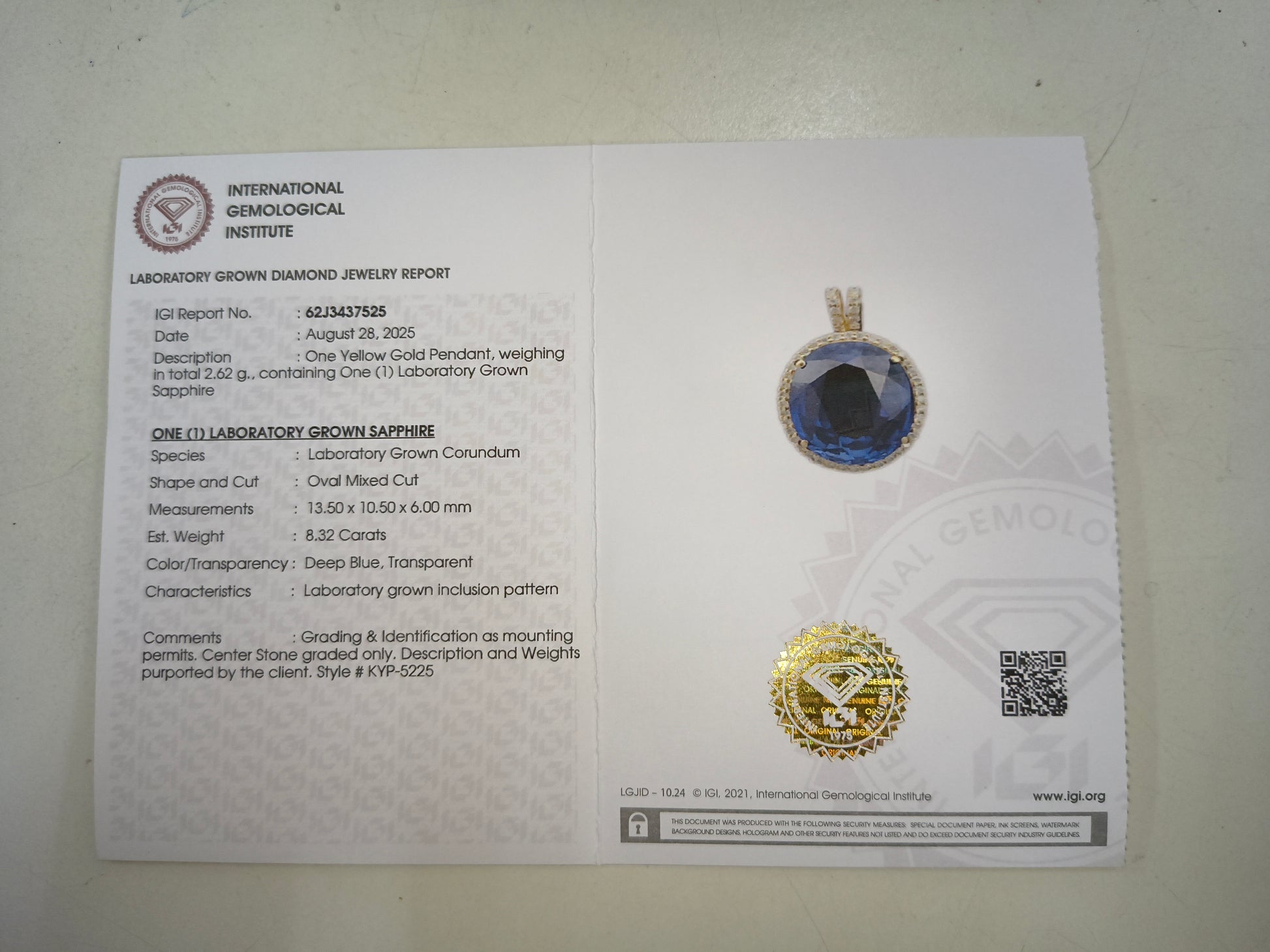 - Lab Name: International Gemological Institute (IGI)