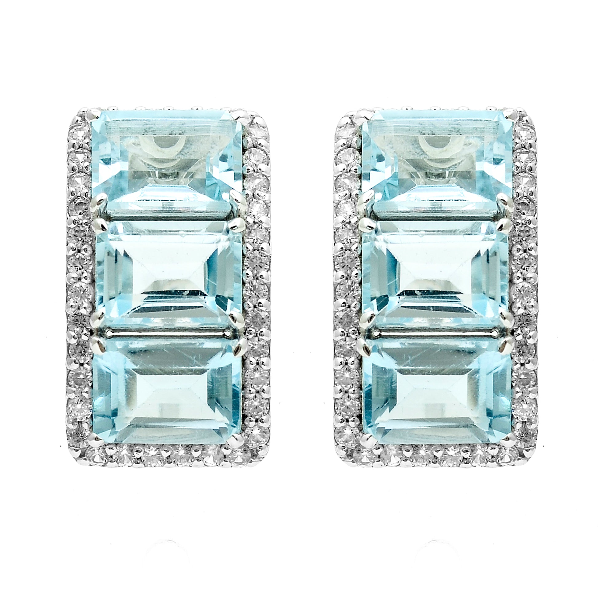8.56 Ct Octagon Blue Topaz, White Zircon 925 Sterling Silver Earrings