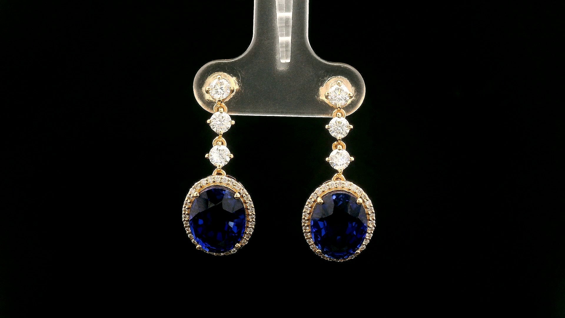 8.68 Ct Oval Lab Grown Blue Sapphire 14K Gold Earrings