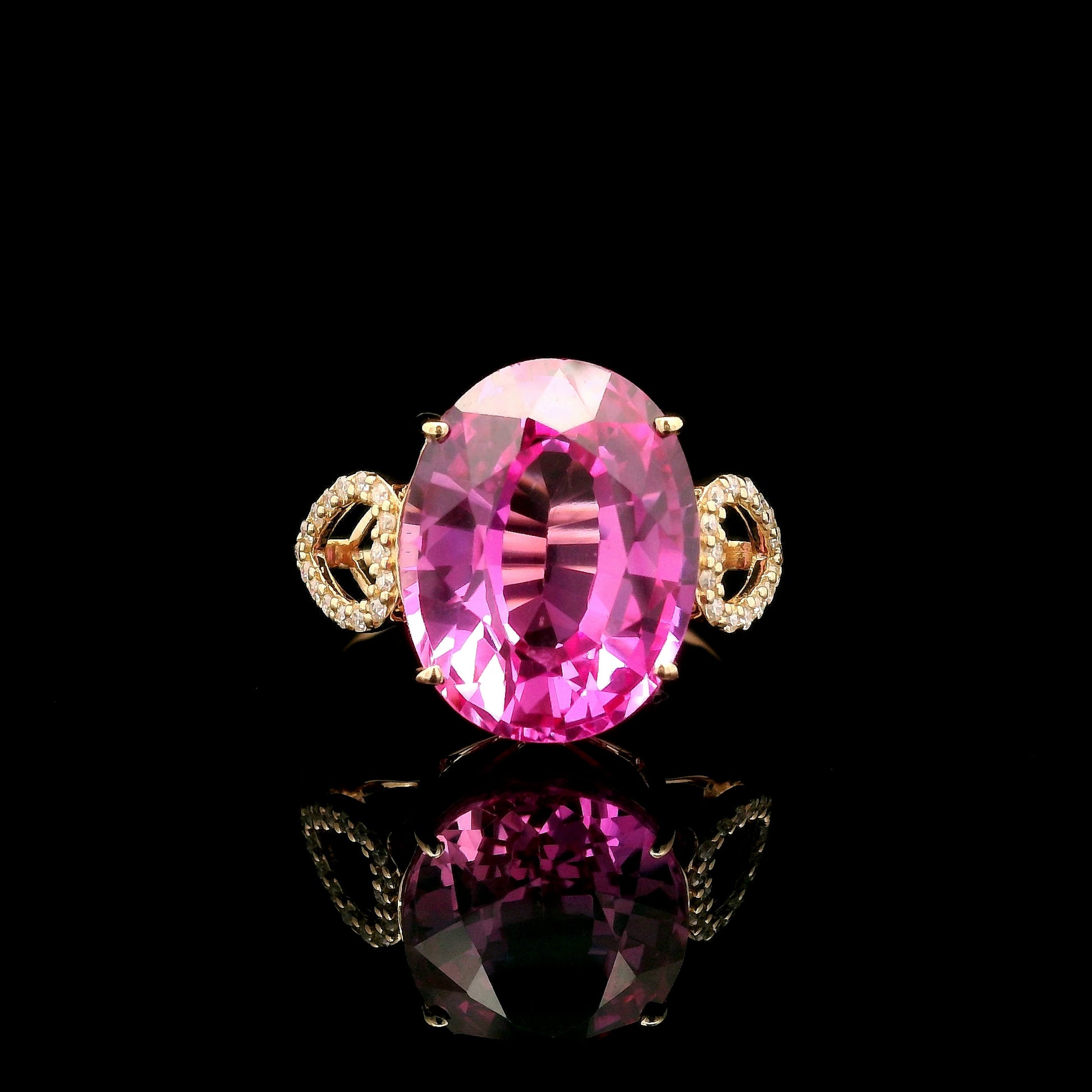 9.02 Total Carat Lab Grown Pink Sapphire 14K Gold Ring
