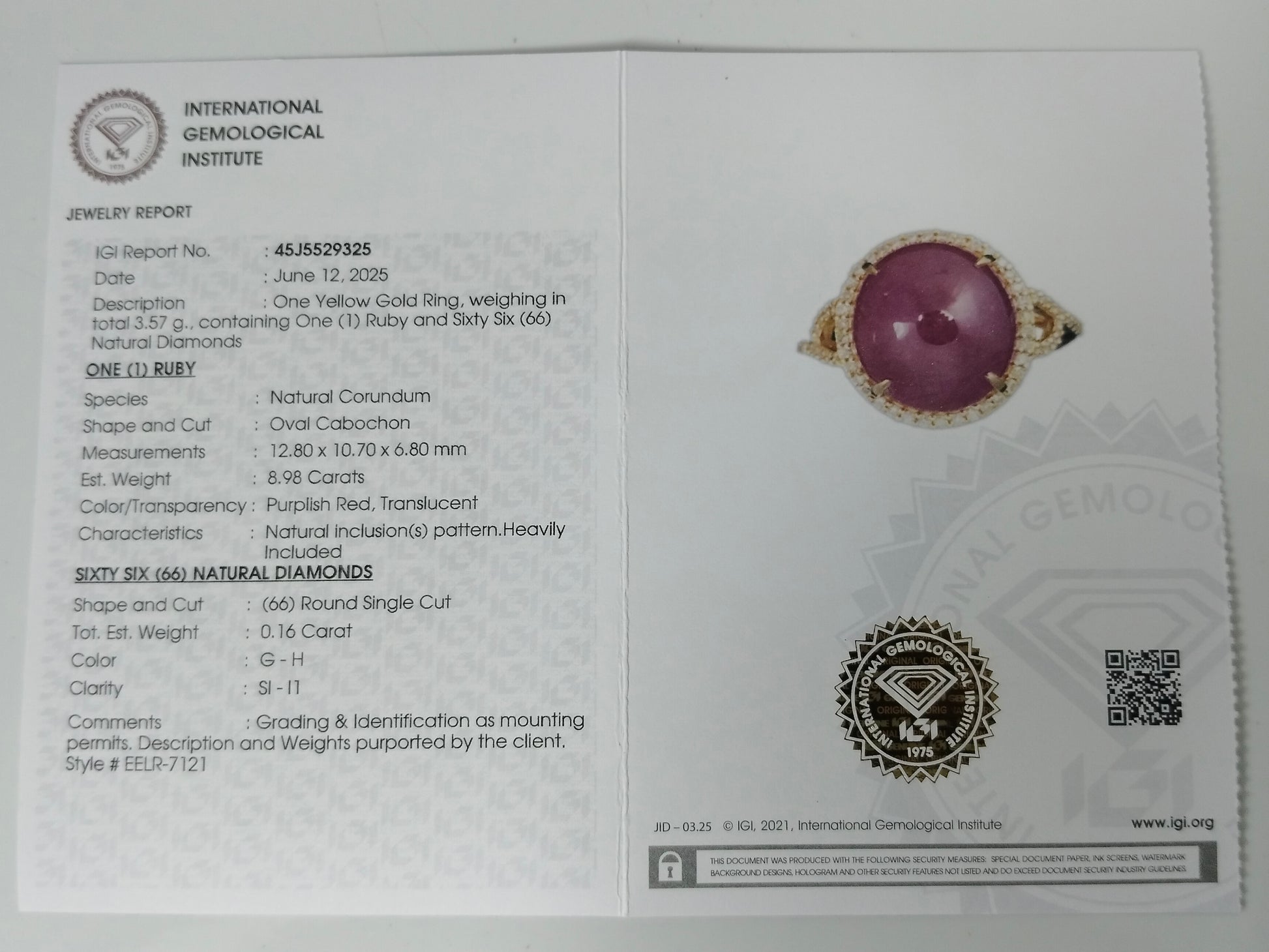 9.14 Total Carat Natural Corundum Ruby 14K Gold Ring