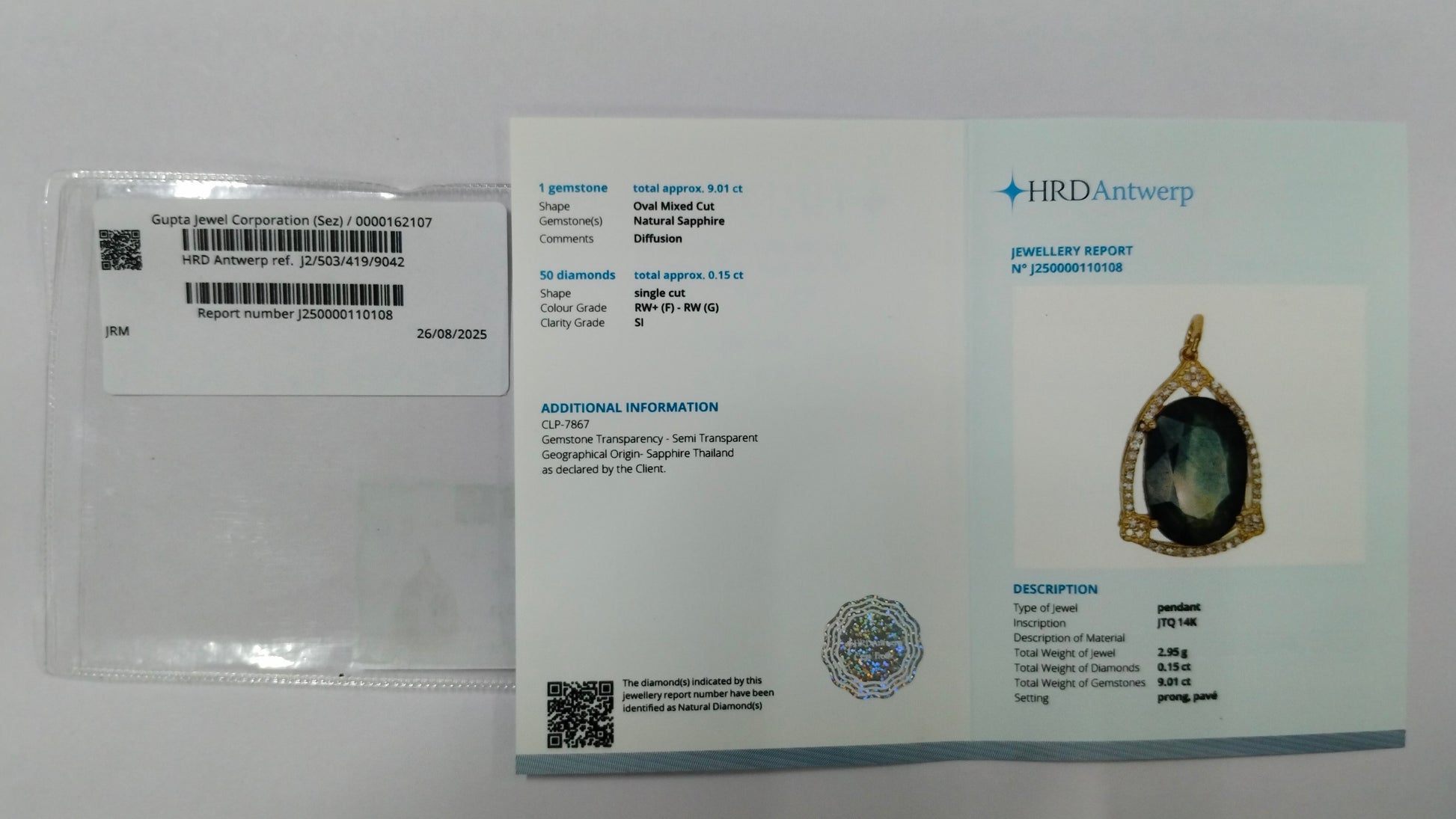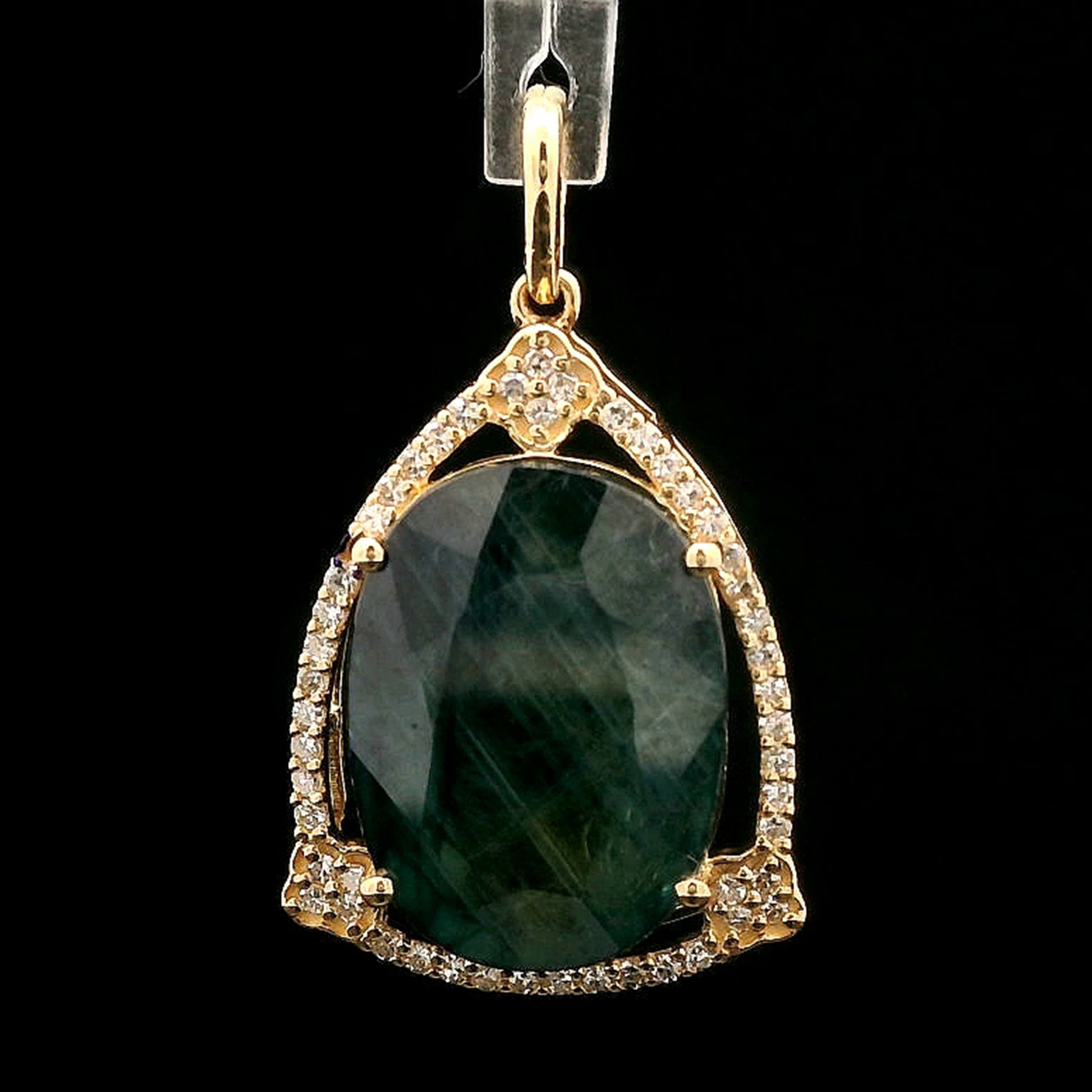 9.16 Ct Oval Mixed Cut Natural Sapphire 14K Gold Pendant