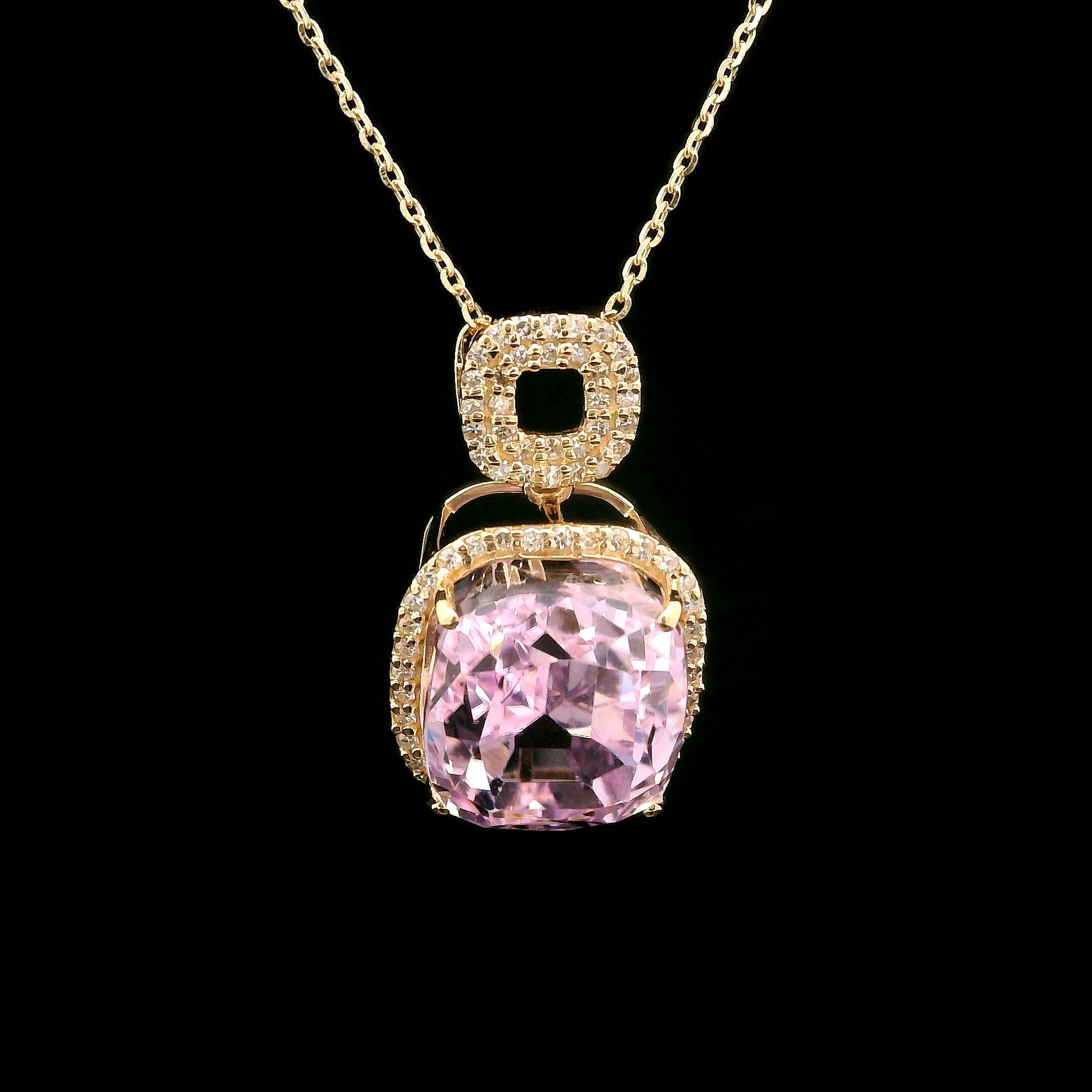 9.19 Ct Cushion Kunzite 14K Gold Pendant
