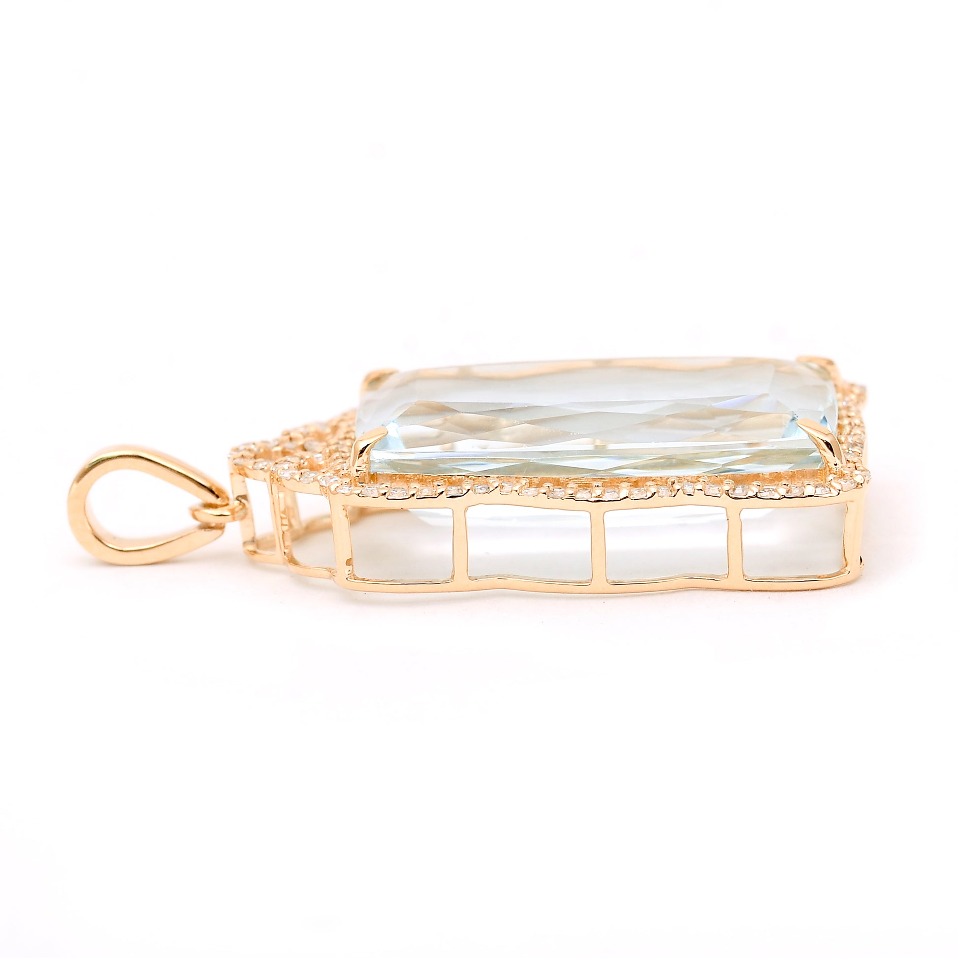 9.25 Ct Cushion Natural Aquamarine 14K Gold Pendant