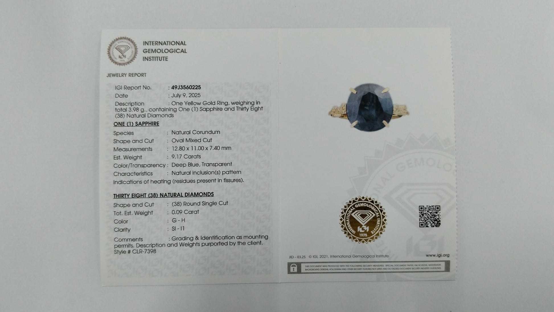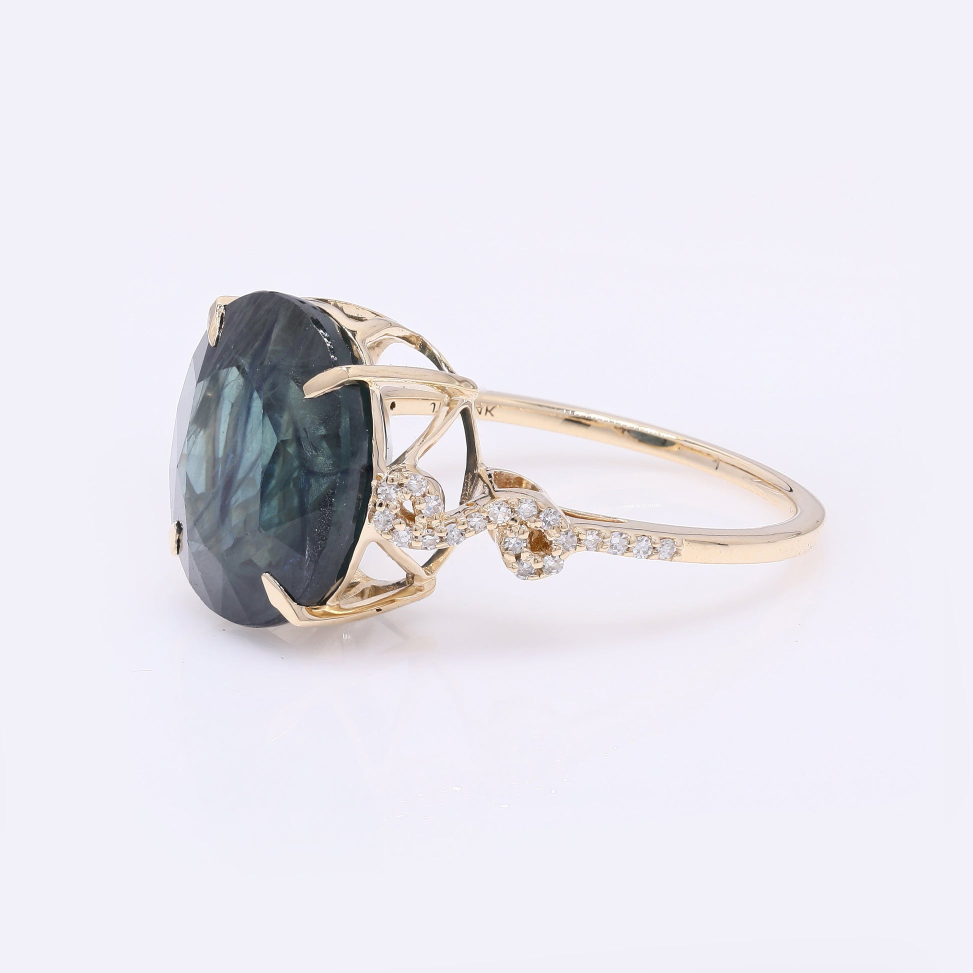9.26 Ct Oval Mixed Cut Natural Corundum Sapphire 14K Gold Ring