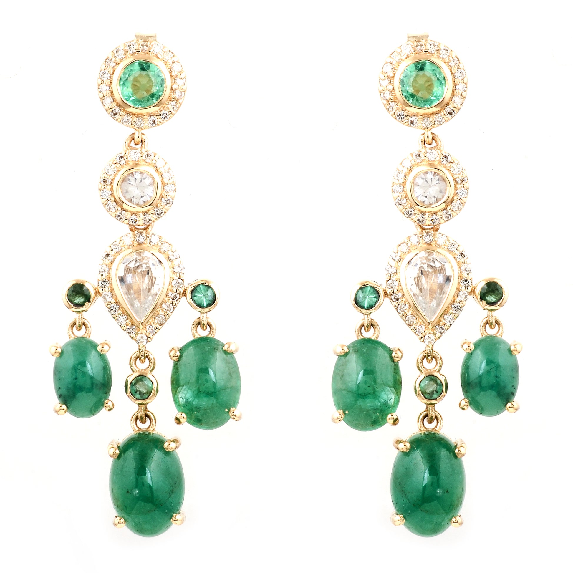 9.62 Total Carat Emerald 14K Gold Earrings