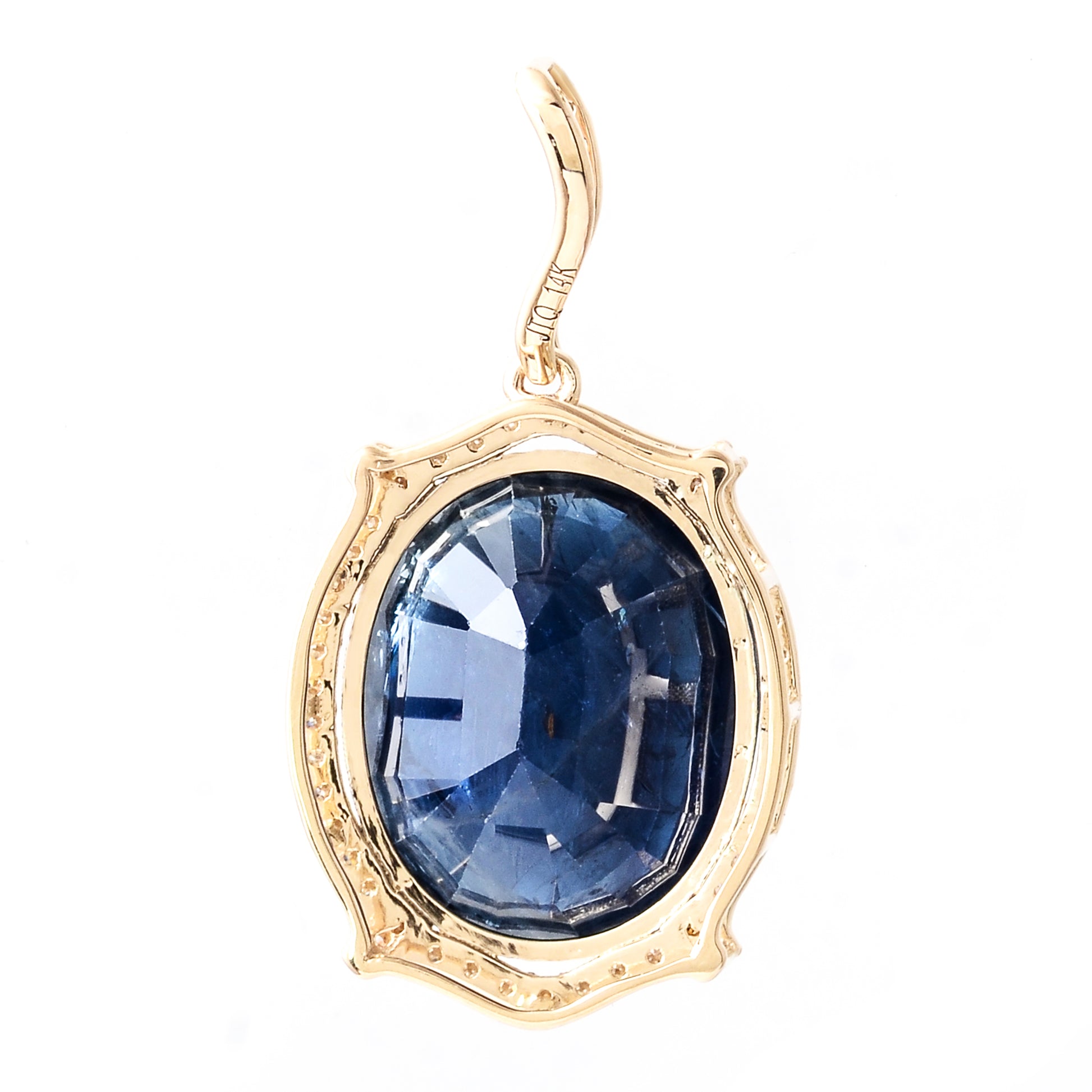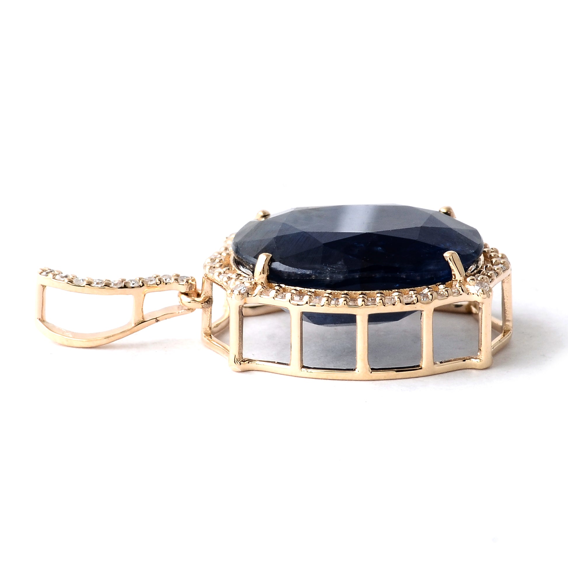 9.62 Ct Oval Mixed Cut Natural Corundum Sapphire 14K Gold Pendant
