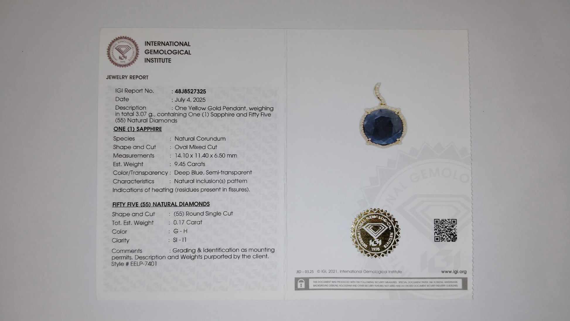 9.62 Total Carat Natural Corundum Sapphire 14K Gold Pendant