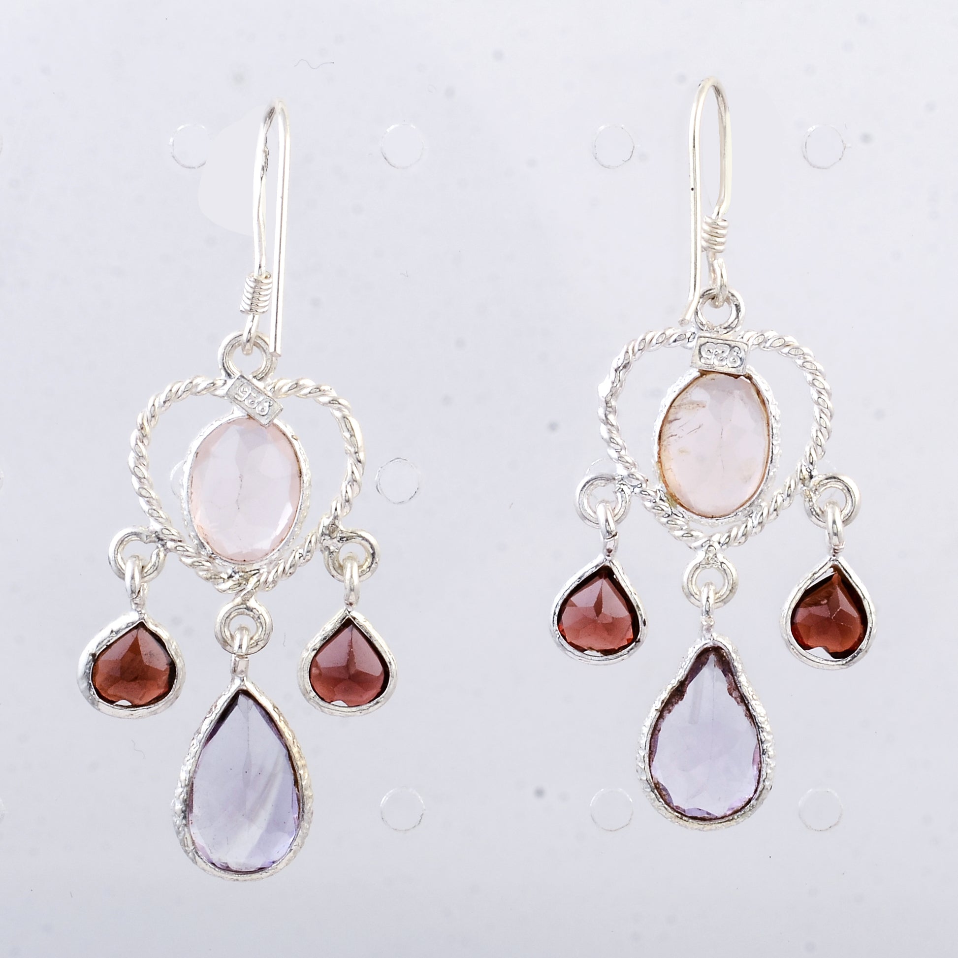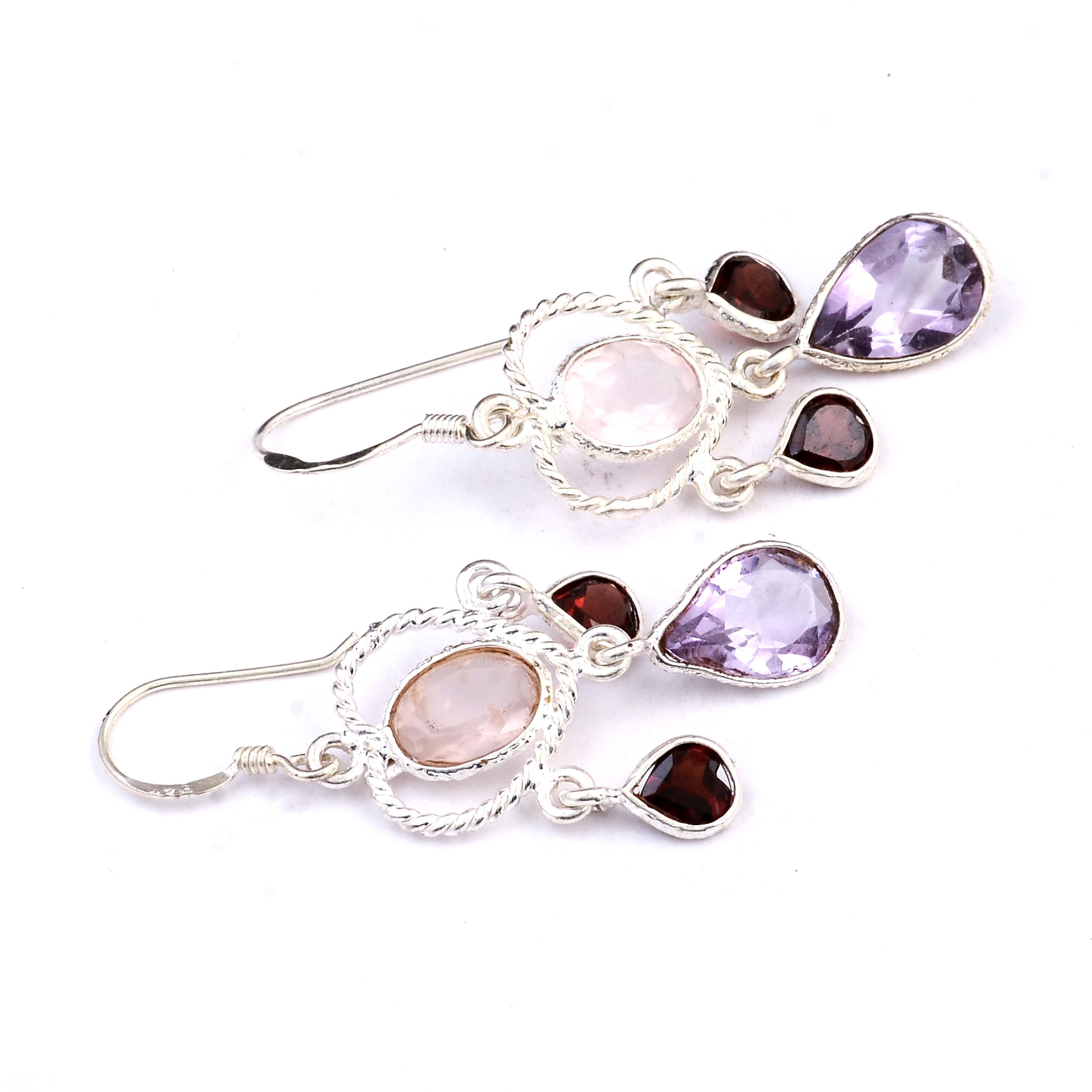 Add a touch of elegance to your collection with this stunning Earrings featuring genuine Rose Quartz & Amethyst set in solid Sterling Silver. With a comfortable fit and eye catching sparkle, it's perfect for both daily wear and special occasions.