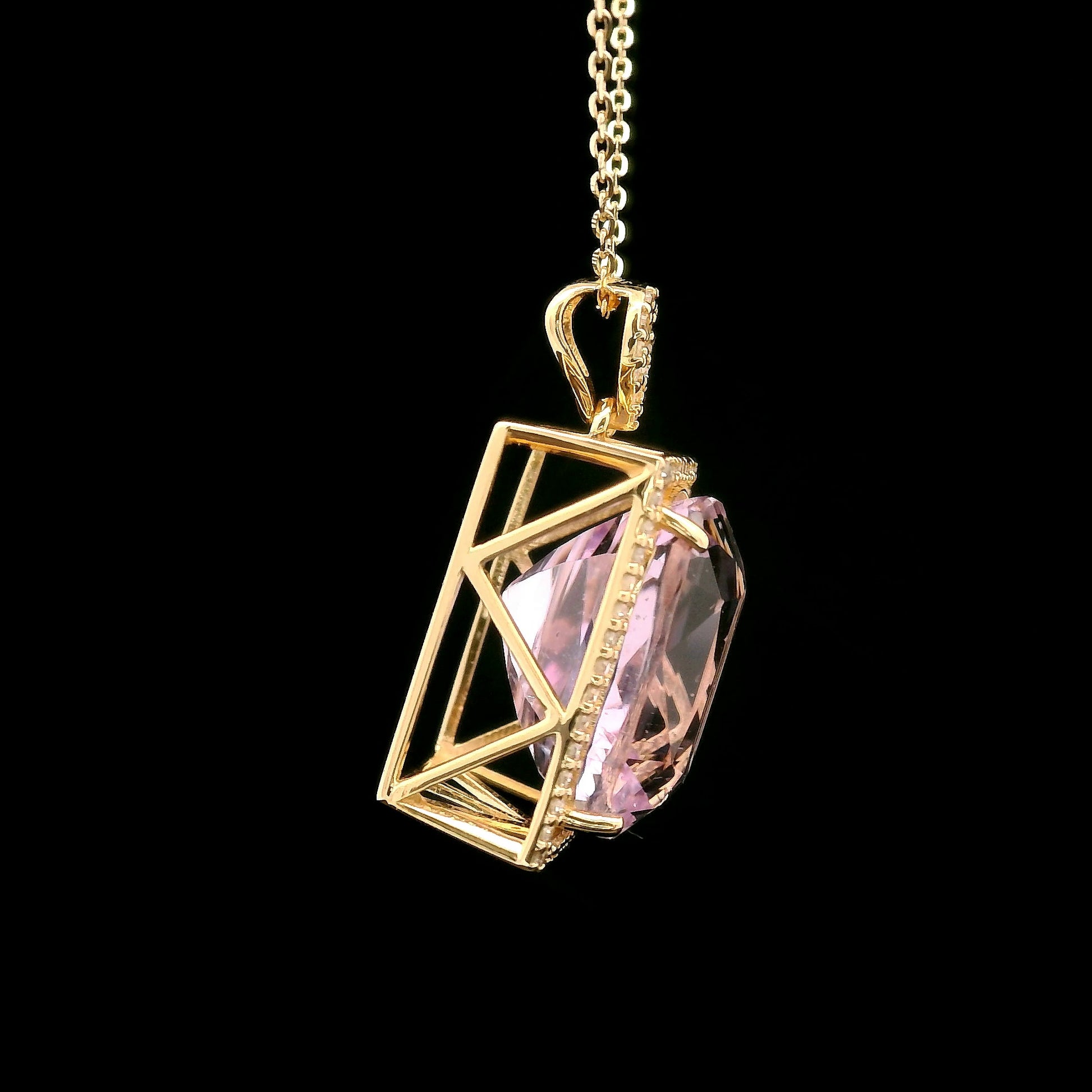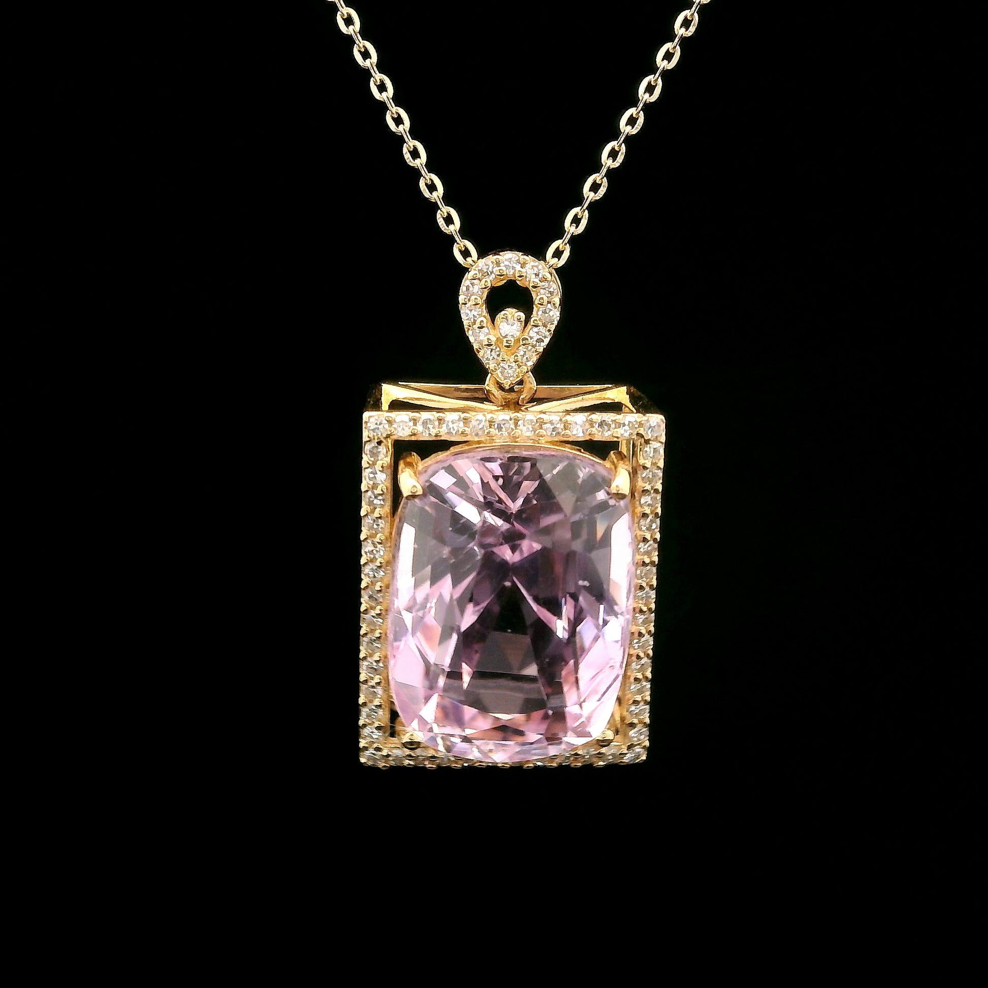 9.69 Ct Cushion Kunzite 14K Gold Pendant